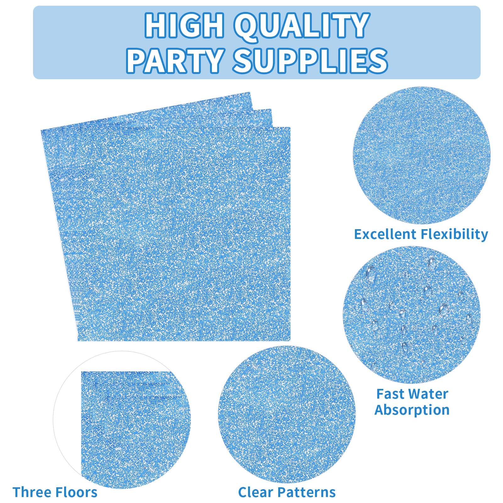 Easy to Clean Up: The set of blue birthday plates and napkins are disposable, you can throw them away directly after the party, no need to wash them, so you have more time and energy to enjoy the party to the fullest, easy to create unforgettable silver fantasy memories