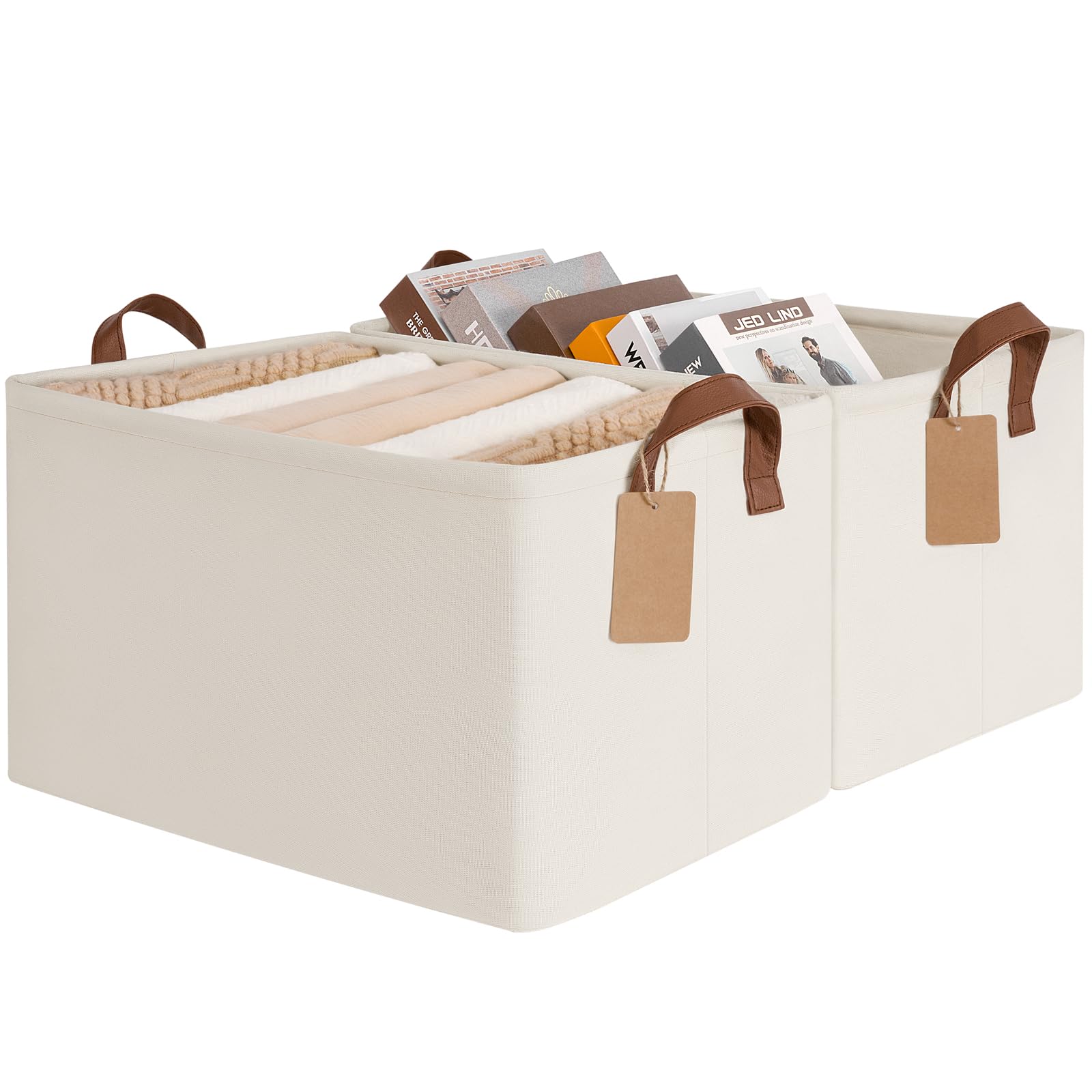 Versatile Storage: Measuring 19" L x 13" W x 11" H, these closet storage bins can handle a wide variety of items. Whether storing clothes, towels, blankets, toys, books, magazines, pet supplies, office and craft supplies, or more, these bins are perfect for any organizational need