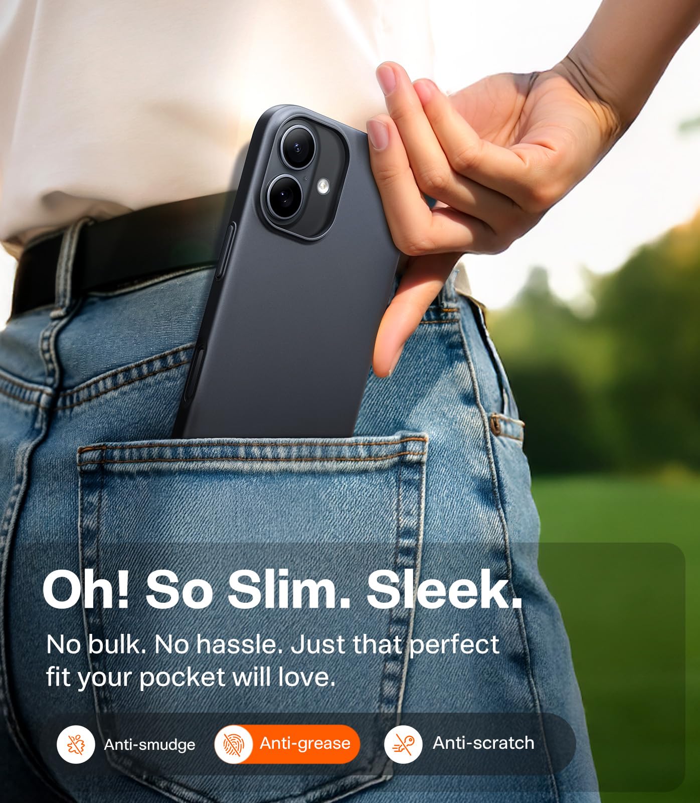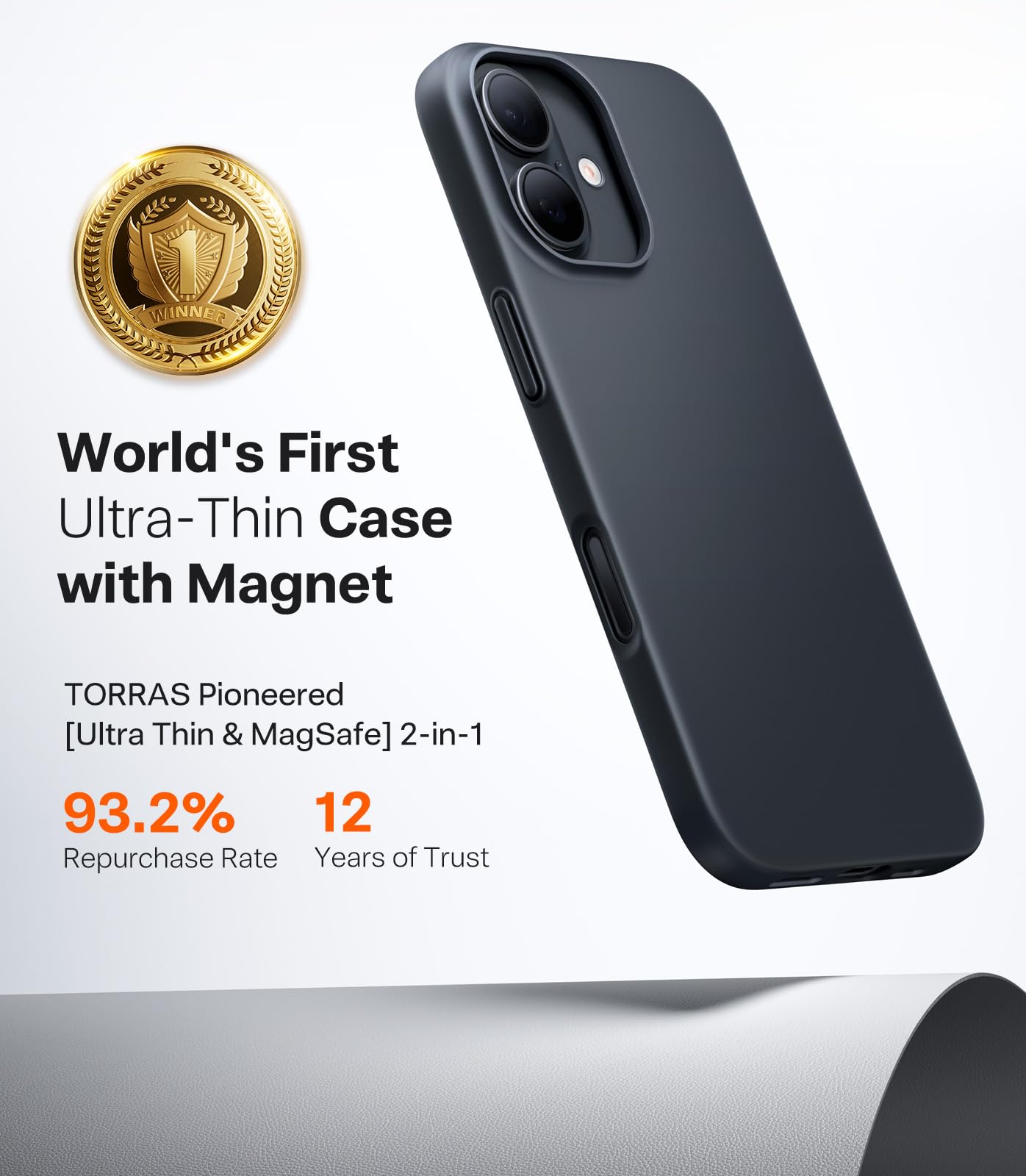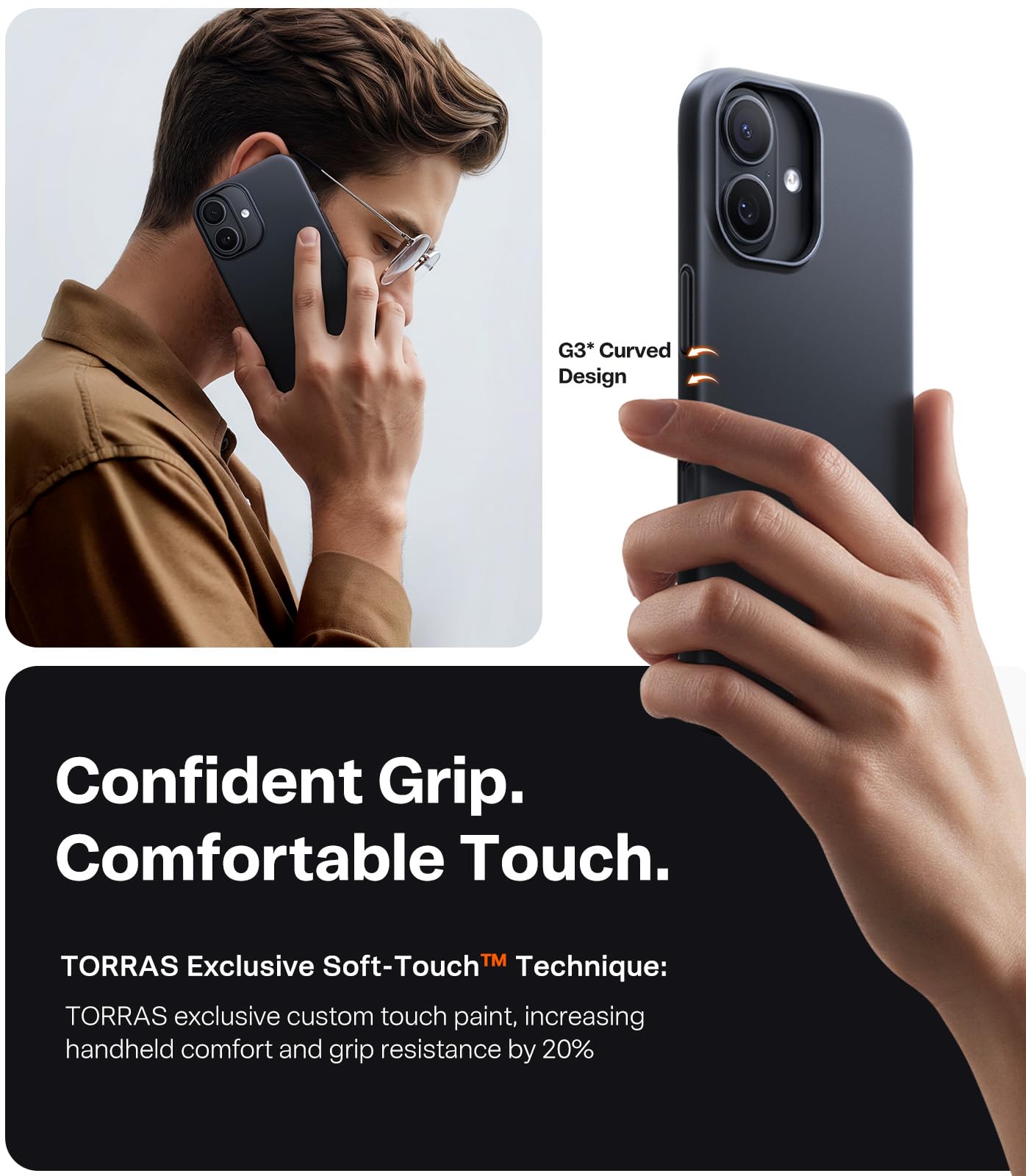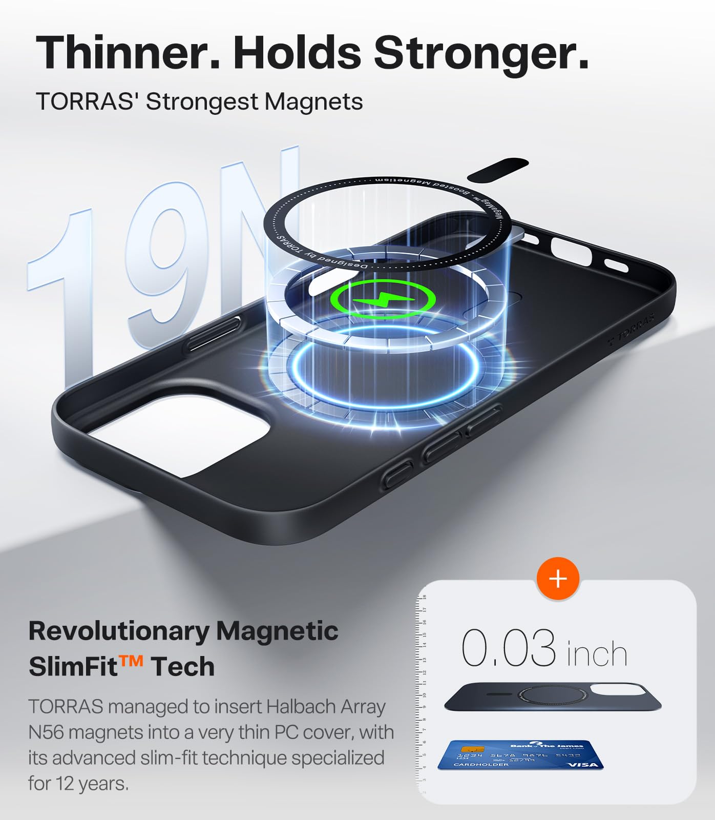 Ultra Thin & Relaxed Lifestyle: At only 0.03 inches thick and 0.63 ounces in weight, the TORRAS magnetic slim fit for iPhone 17 case is incredibly thin and lightweight. This slim case for iPhone 17 Pro offers a true bare-phone feel. G3 ergonomic curves fit your palm naturally, sliding into summer pockets without bulk . Sleek matte finish resists fingerprints—ideal for professionals who hate chunky cases.