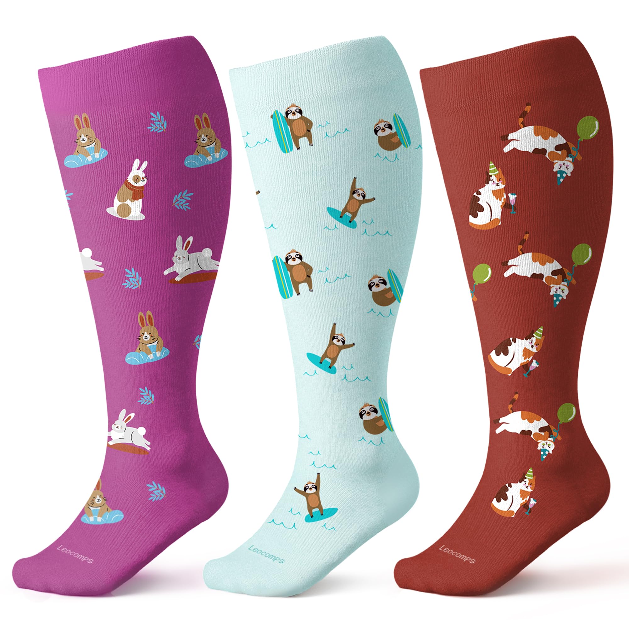 3-Pair Set for Everyday Support: Lalapapa compression socks come in a convenient 3-pair set, designed to meet your needs for multiple occasions. Whether you're at work, traveling, exercising, or relaxing at home, you'll always have the right pair to keep your legs supported and comfortable. With playful patterns and reliable functionality, Lalapapa combines style, comfort, and performance in every step