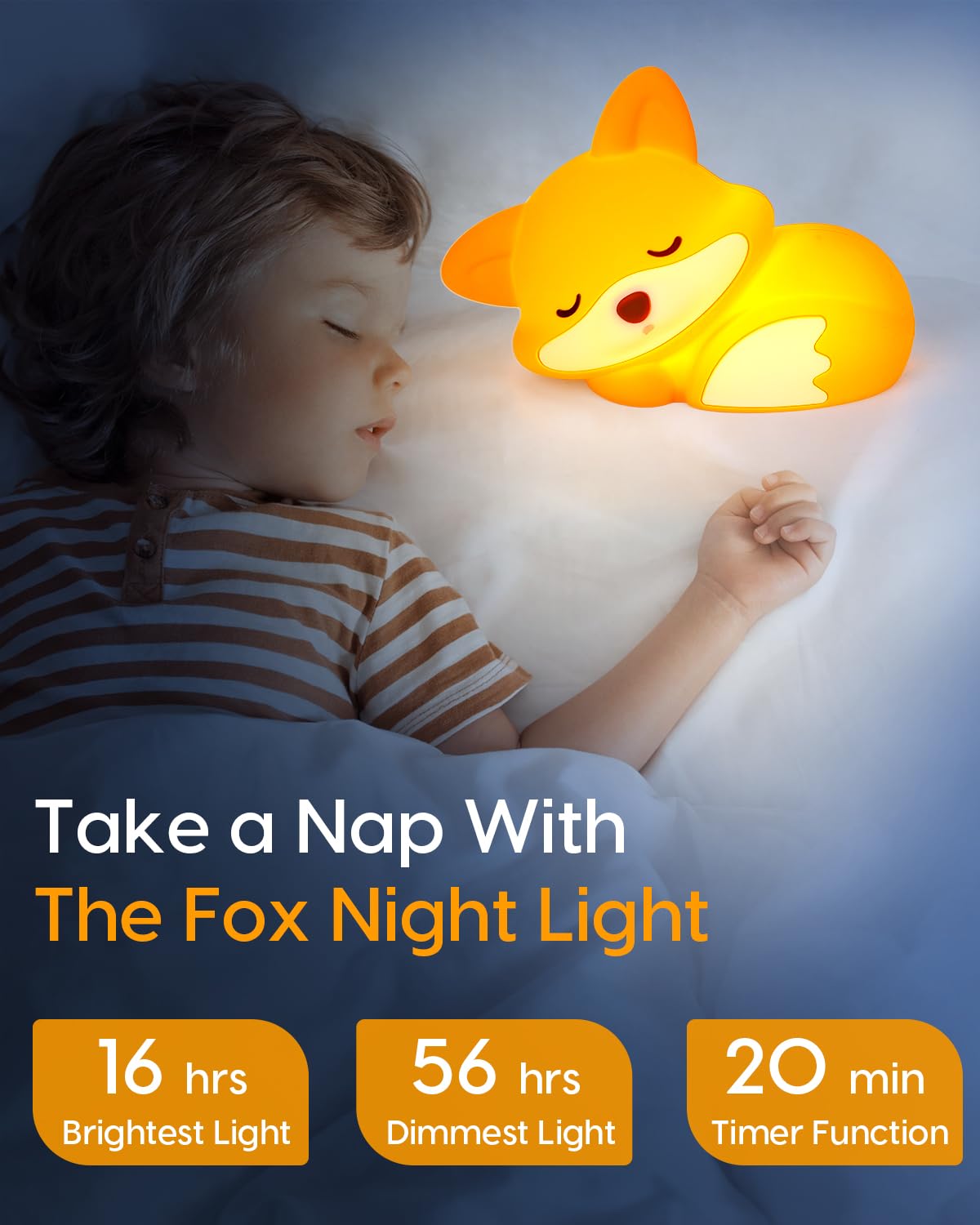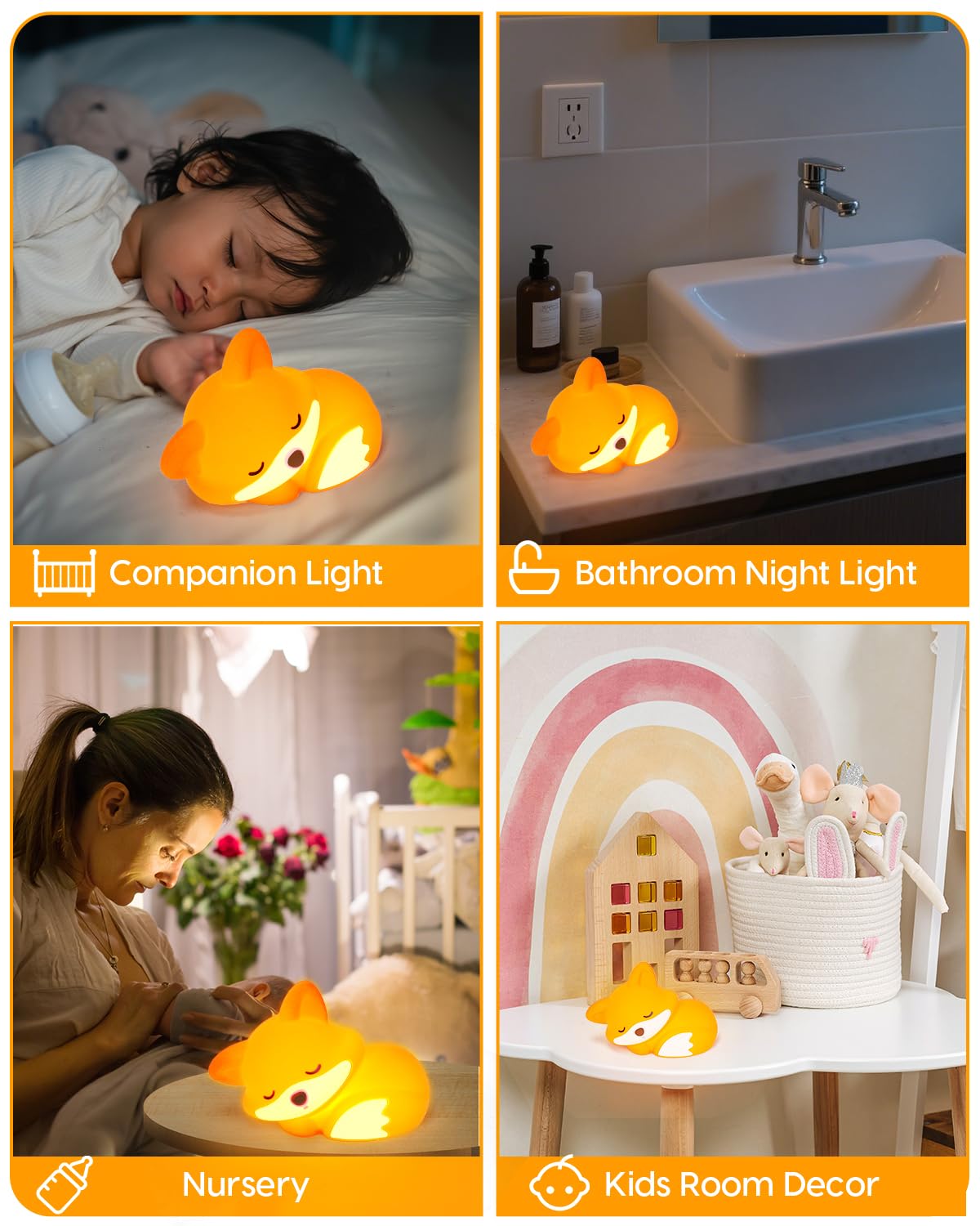 Soft Silicone Lamp: Made of soft washable silicone, every Amaredom fox night light is 100% safe for you and your kids. Its round design without sharp edges ensures your family is protected from hurting during use