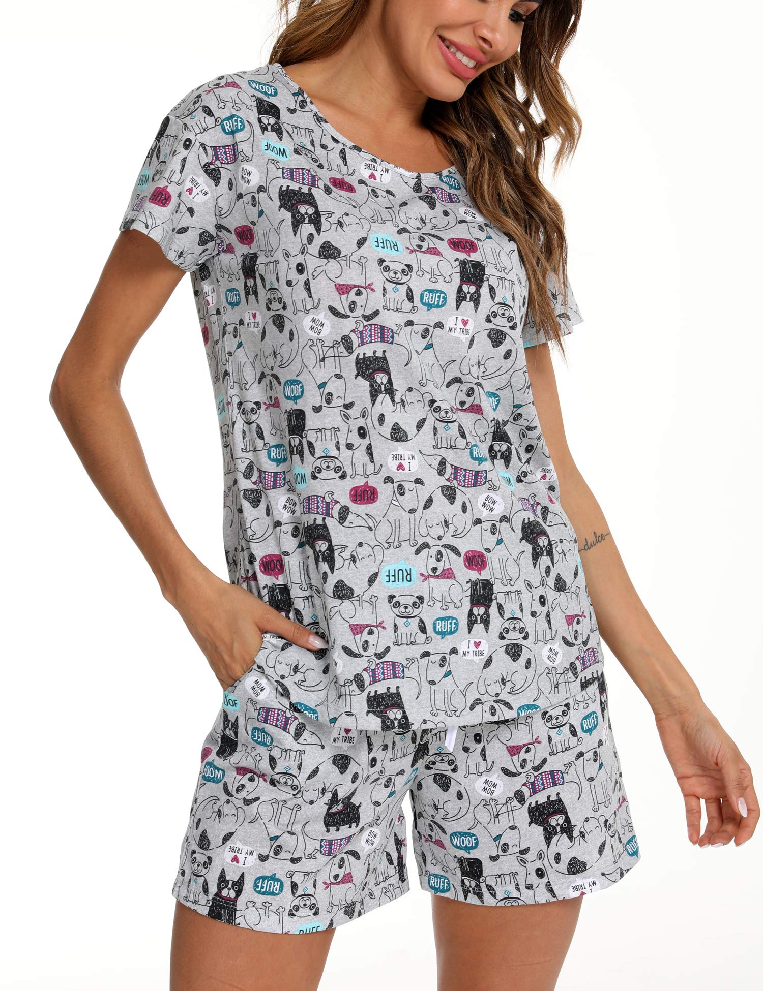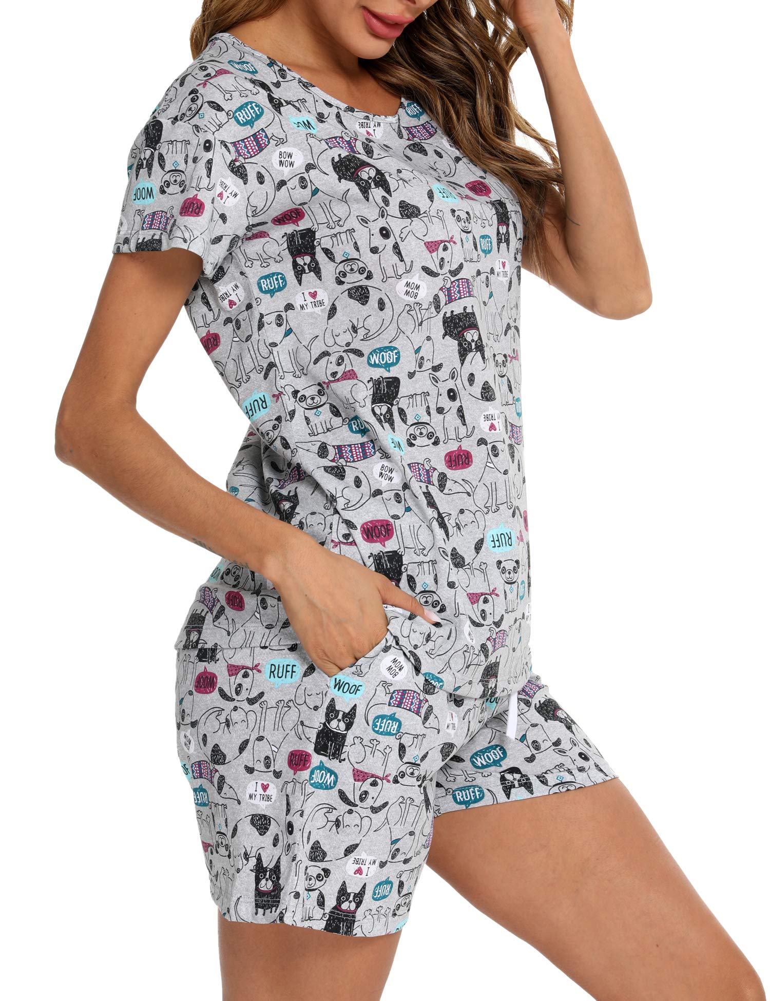 Comfy Material: Made of 60% cotton, 40% polyester, soft, non-irritating, superbly breathable, offers gentle give while maintaining its shape, summer pajama short sets bring you comfy skin touch feeling.