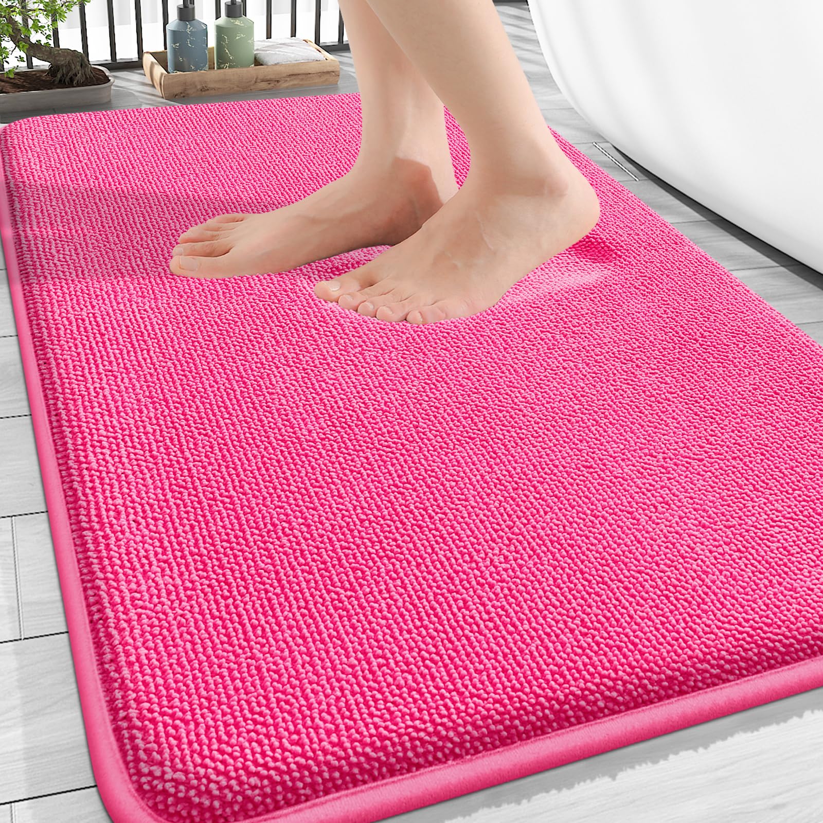 [Stylish and Cloud-Like Comfort] OLANLY's Plain - colored Bright - Velvet Memory Foam Bath Mat, with a elegant design that enhances the aesthetic of your bathroom. Crafted from ultra-soft memory foam coral velvet outer material and thick cushion memory foam, our bathroom rug provides a cloud-like comfort that contours to the shape of your body, making every step a luxurious experience.