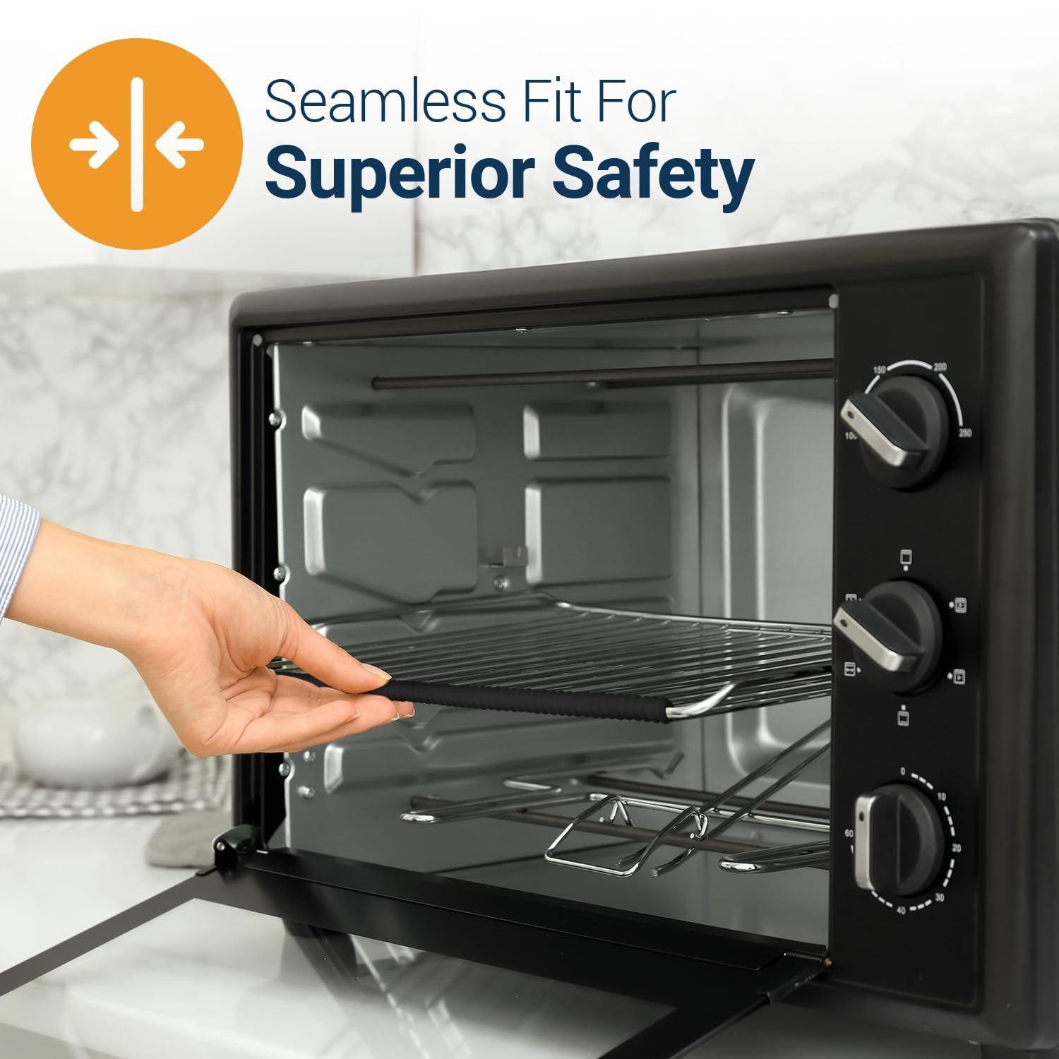 UNIVERSAL FIT: Cut to size using scissors to fit your oven rack shelves, toaster oven or microwave oven. Each pack comes with 2 oven rack protectors measuring 22β each. All our oven shields provide a snug fit that blends in well with your kitchen and is non-intrusive