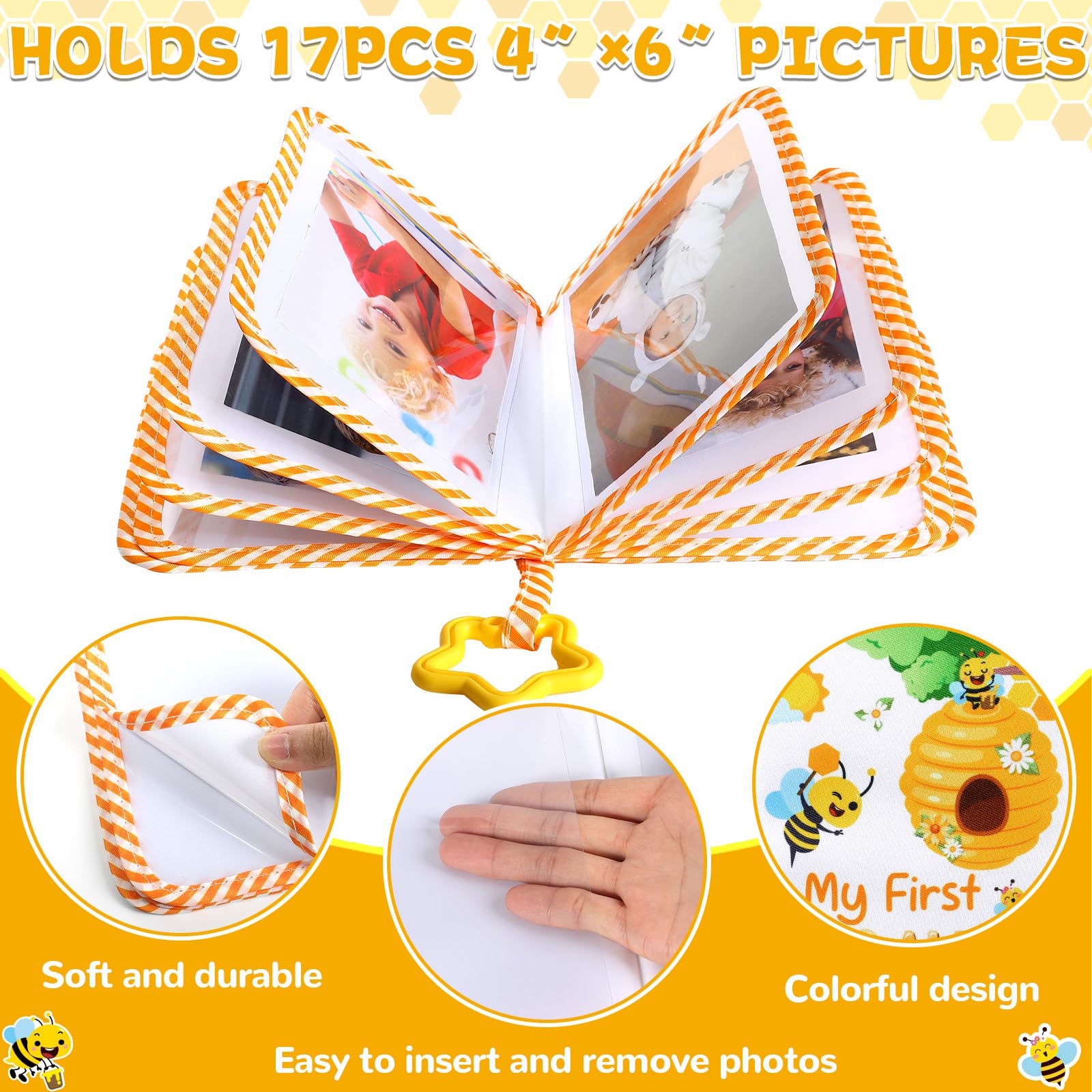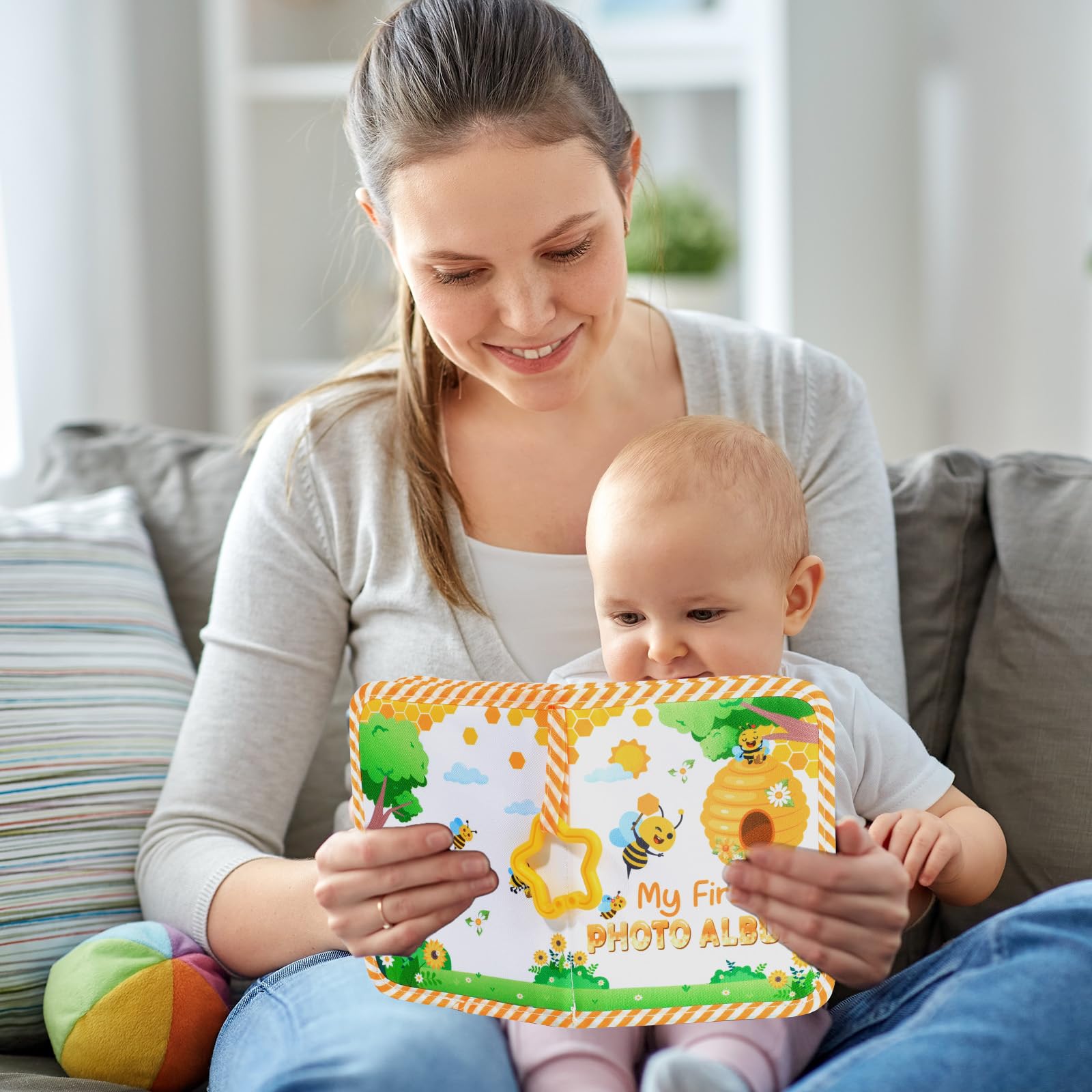 Adorable design: With its playful pattern of cheerful bees, sunflowers, and bright colors, is not only visually appealing but also serves as a durable and soft photo holder for your little one's first pictures. The cover is printed with the words "MY FIRST Photo Album" in a stylish font, making it the great way to document your baby’s growth and family moments. The simple yet elegant design makes it a timeless keepsake for both parents and little ones.