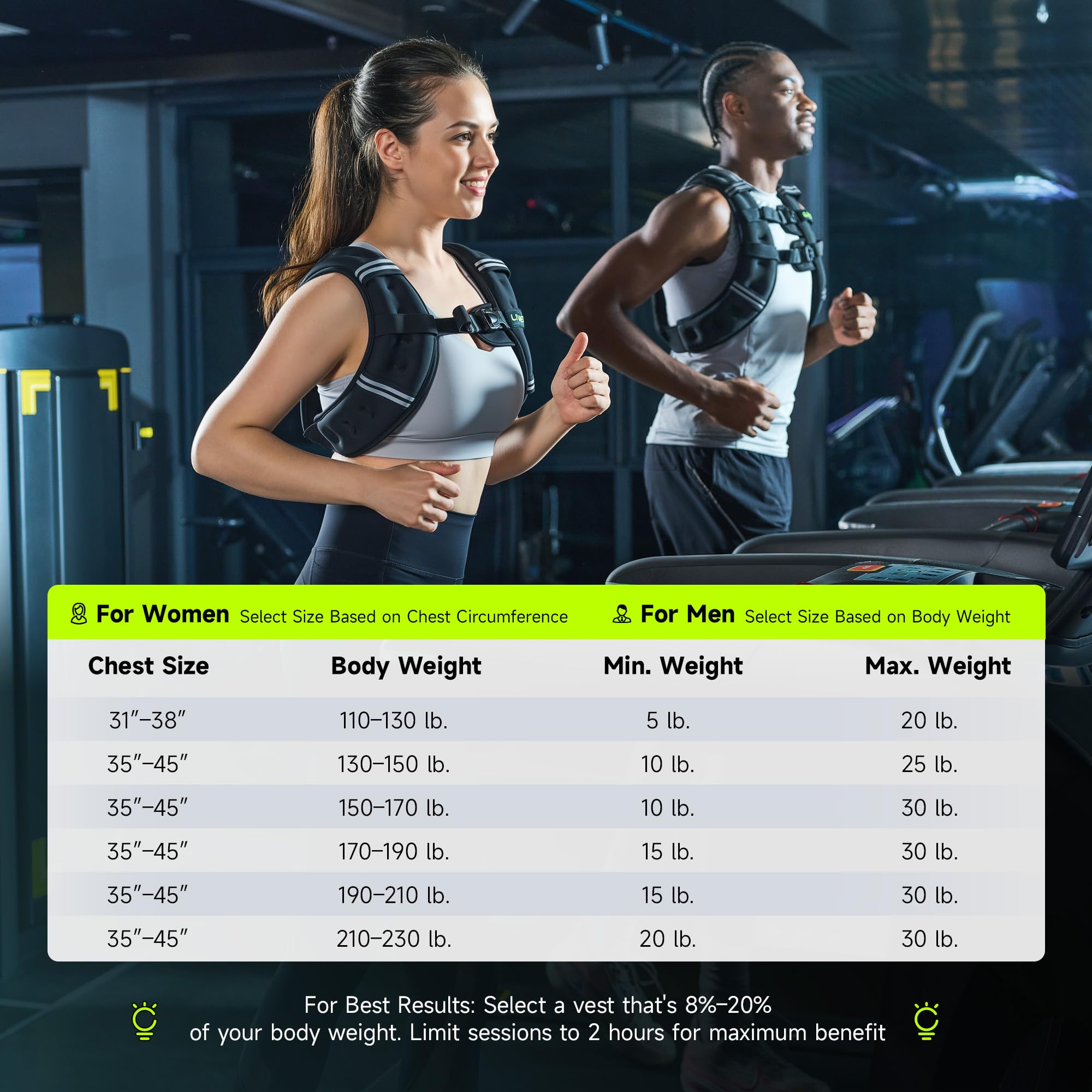 Secure Ergonomic Fit: Designed to move with you, this weight vest features an adjustable buckle strap to fit chest sizes from 31" to 45". Whether you're walking fast or lifting heavy, our weight vest for men won't bounce, shift, or rub uncomfortably