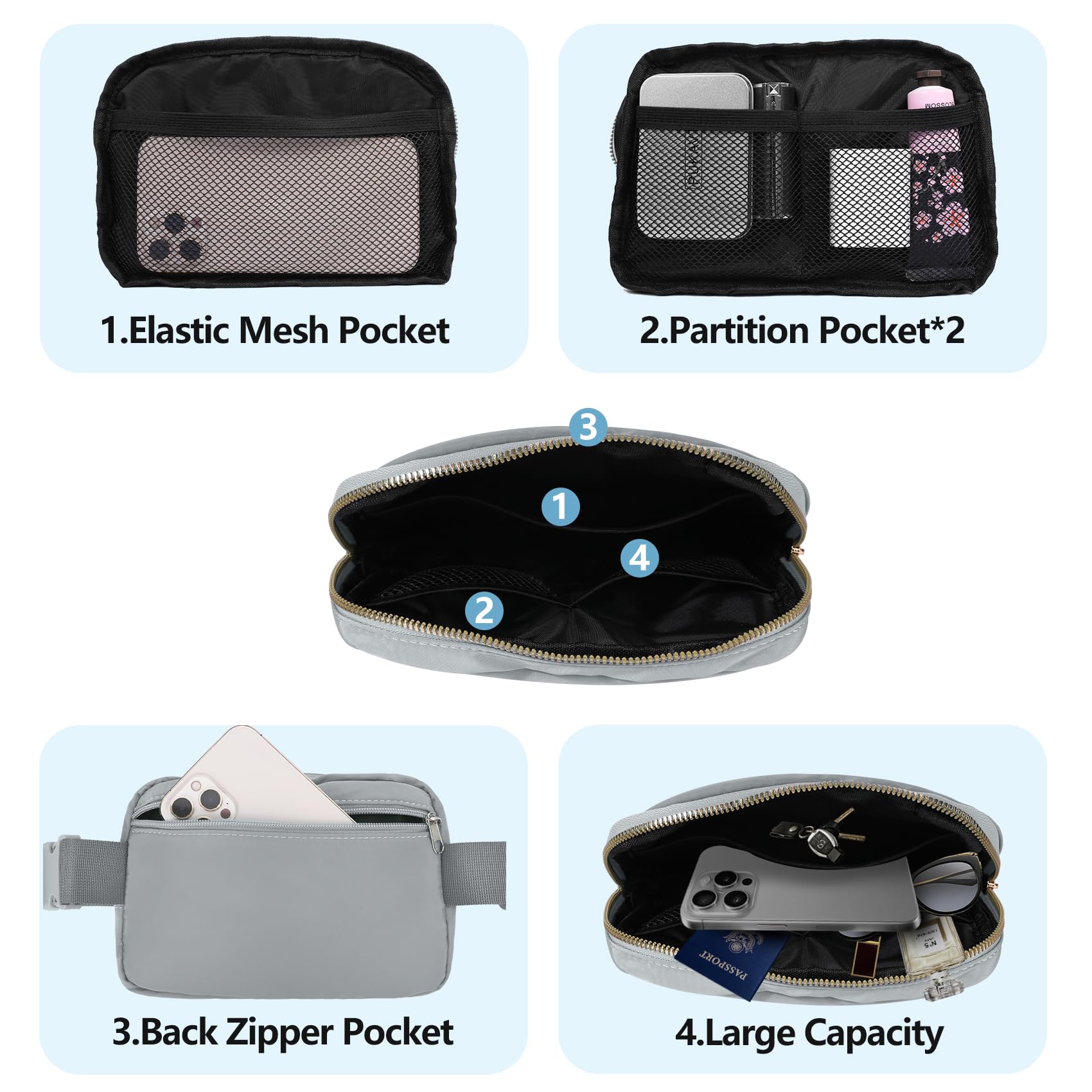 Large Capacity:Spacious main pocket and back pocket with zipper closures keep all of your essentials secure. You can put key, cosmetics, mobile phones and other items in this waist pack.