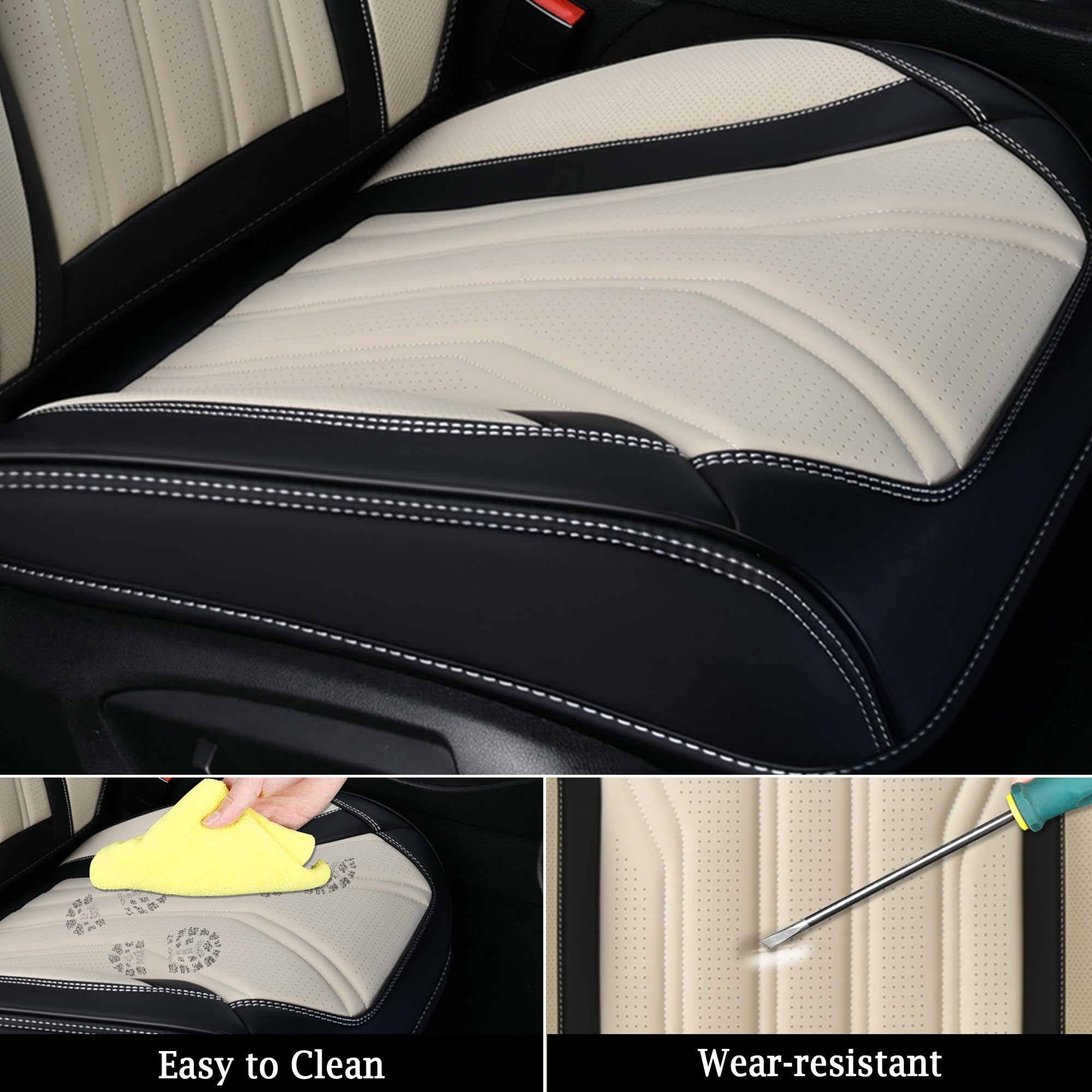 【EASY TO INSTALL&CLEAN】: Seat cushion covers are designed to install easily in 10-20mins after reading the installation instructions and videos. Before installing, please check the products and select the proper installation method. It is very convenient to use a wet towel to wipe the car seat cover in a renew condition.