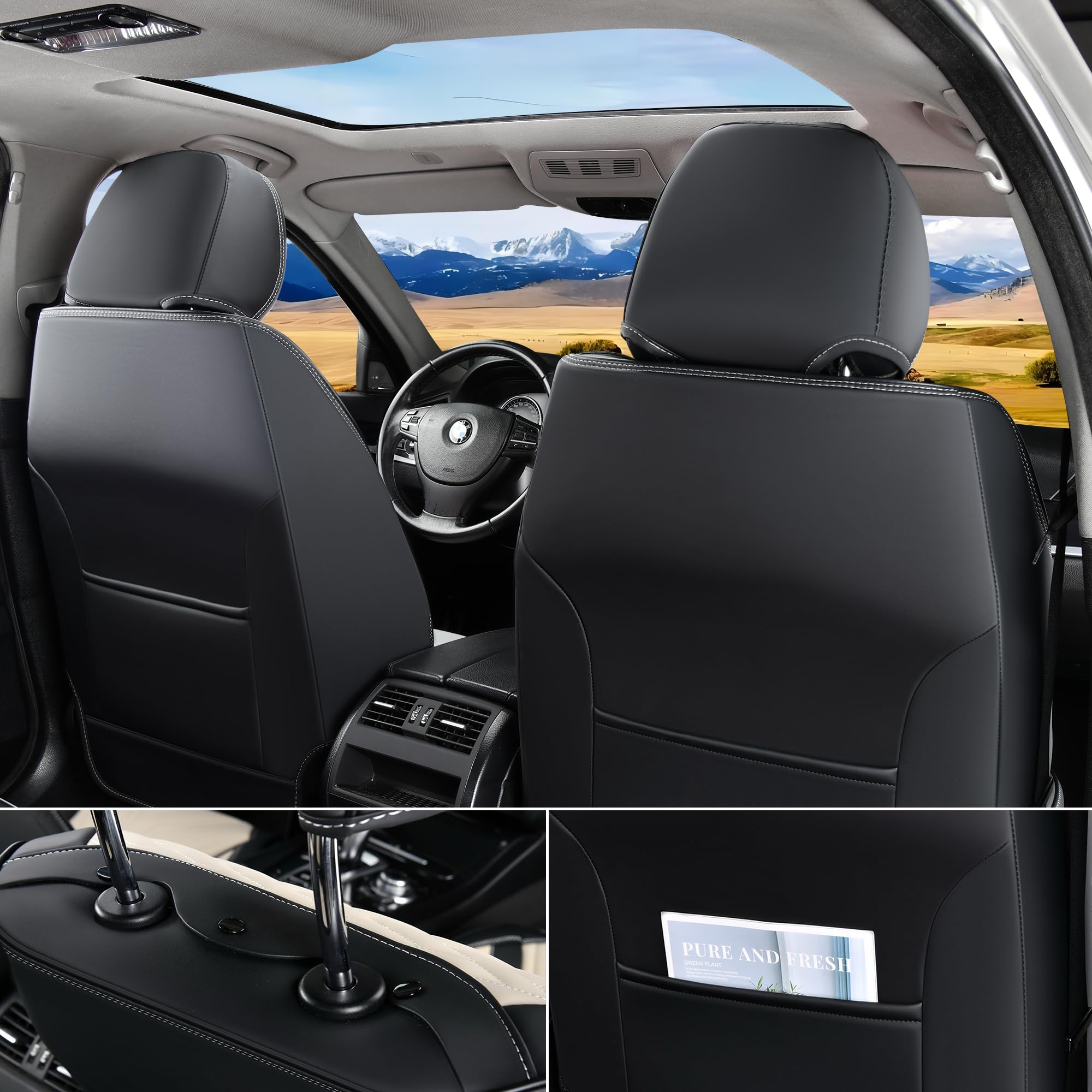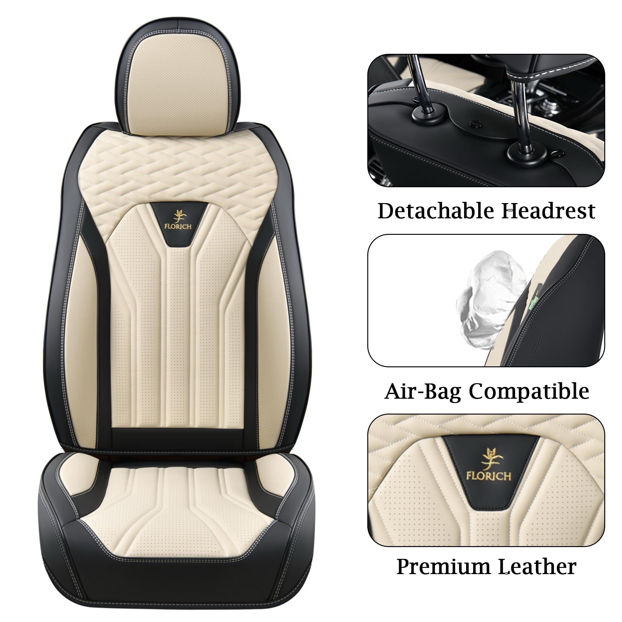 【UNIVERSAL FIT】: The Leather seat Covers are universal manufactured to meet most specification of most vehicles. , they are tailored made to fit more than 99% vehicles. Just cover the seat but not inhinder the original functions. Every auto feature is retained, like airbags, seatbelts and even massage.