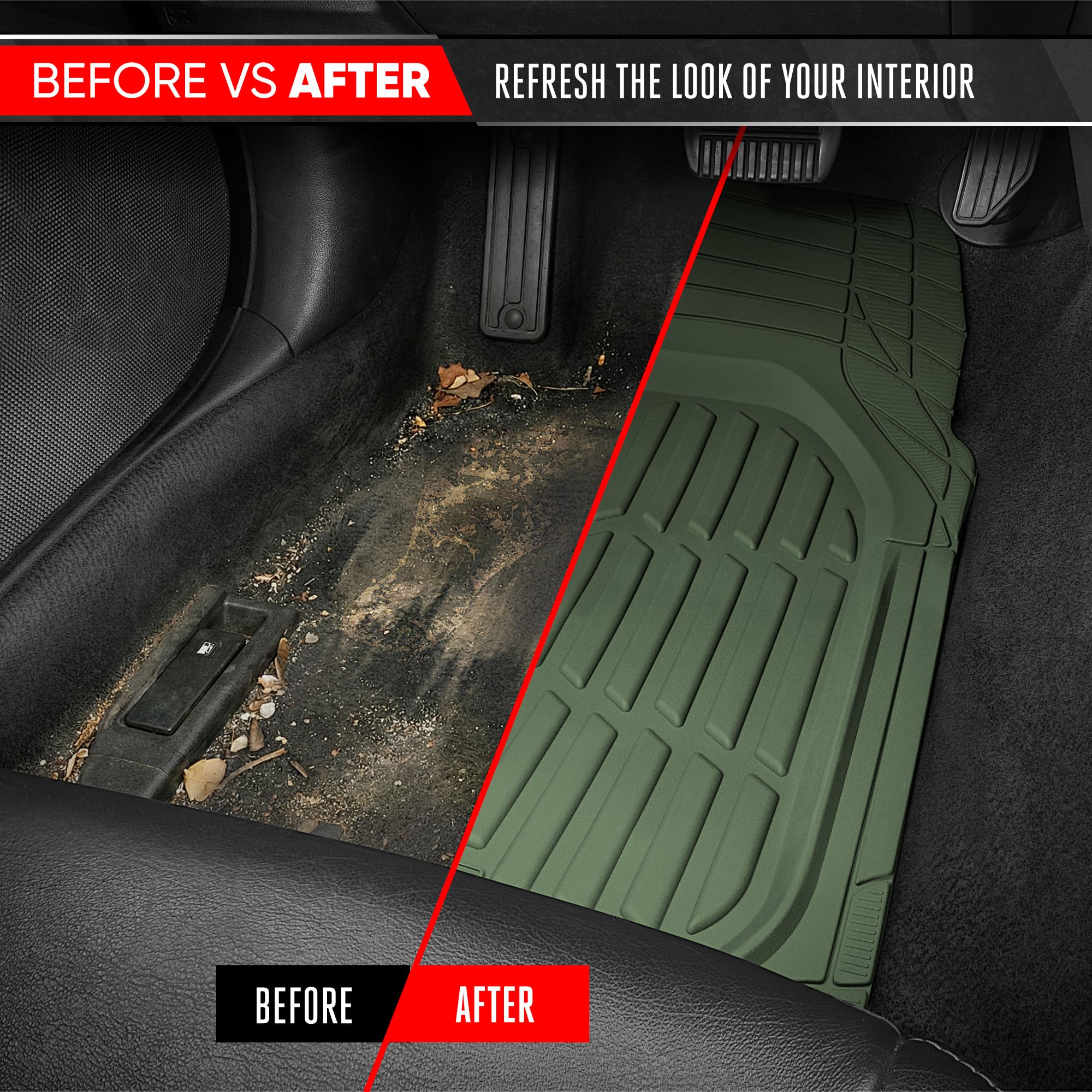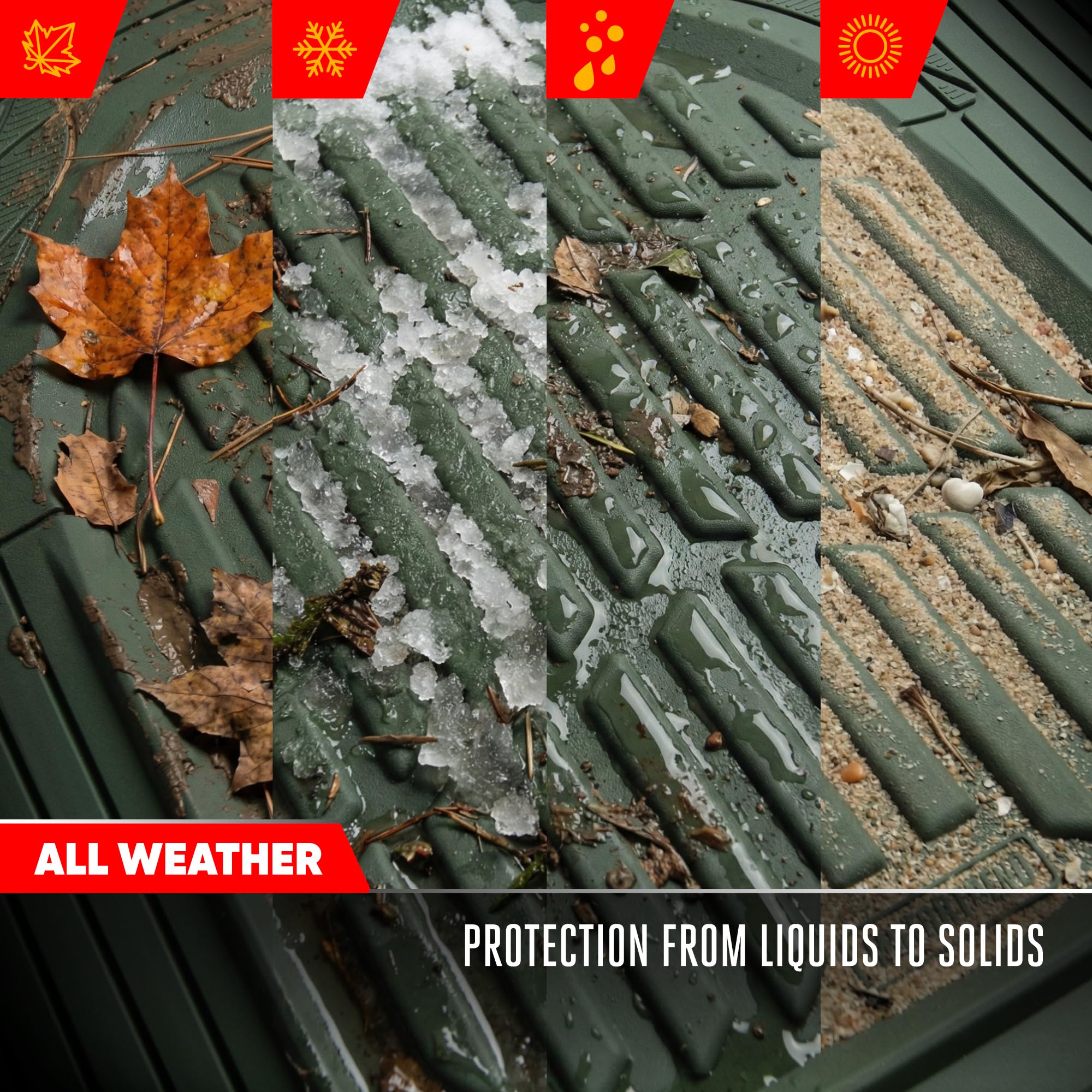 ALL-WEATHER – These car accessories for women and men protect against mud, snow, rain, road salt, spills, and debris. The rubber floor mats are truck accessories for any climate for all seasons.
