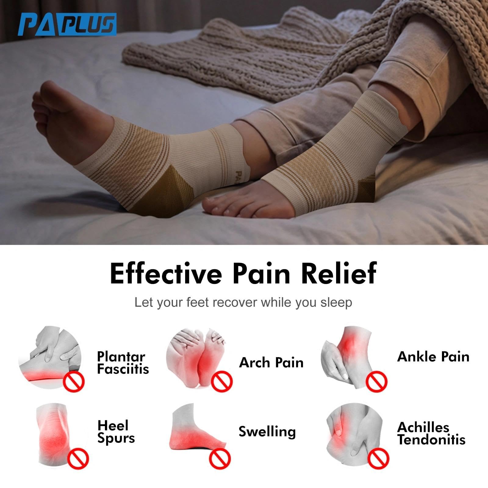 FAST PAIN RELIEF:Our compression foot sleeves helps relieve foot pain by stretching tendons and relieving pressure on the plantar fascia. Including relief of plantar fasciitis, arch pain, and heel pain. They can also improve foot circulation, stabilize ankle joint, aid in recovery from edema and heel spurs, and helps stabilize feet and prevent injuries.