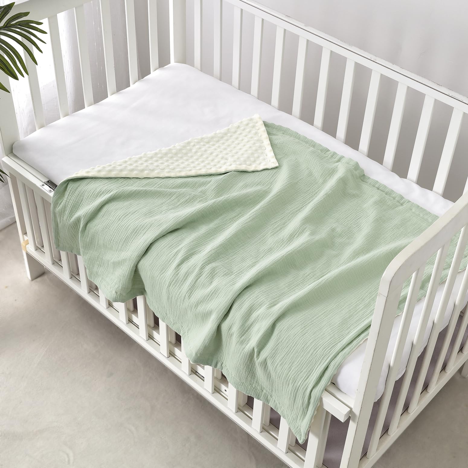 Material: Made with organic muslin cotton, which is soft, breathable, and gentle on a baby’s delicate skin.The mink (fleece) backing adds extra warmth and plush comfort, making it great for cooler weather.