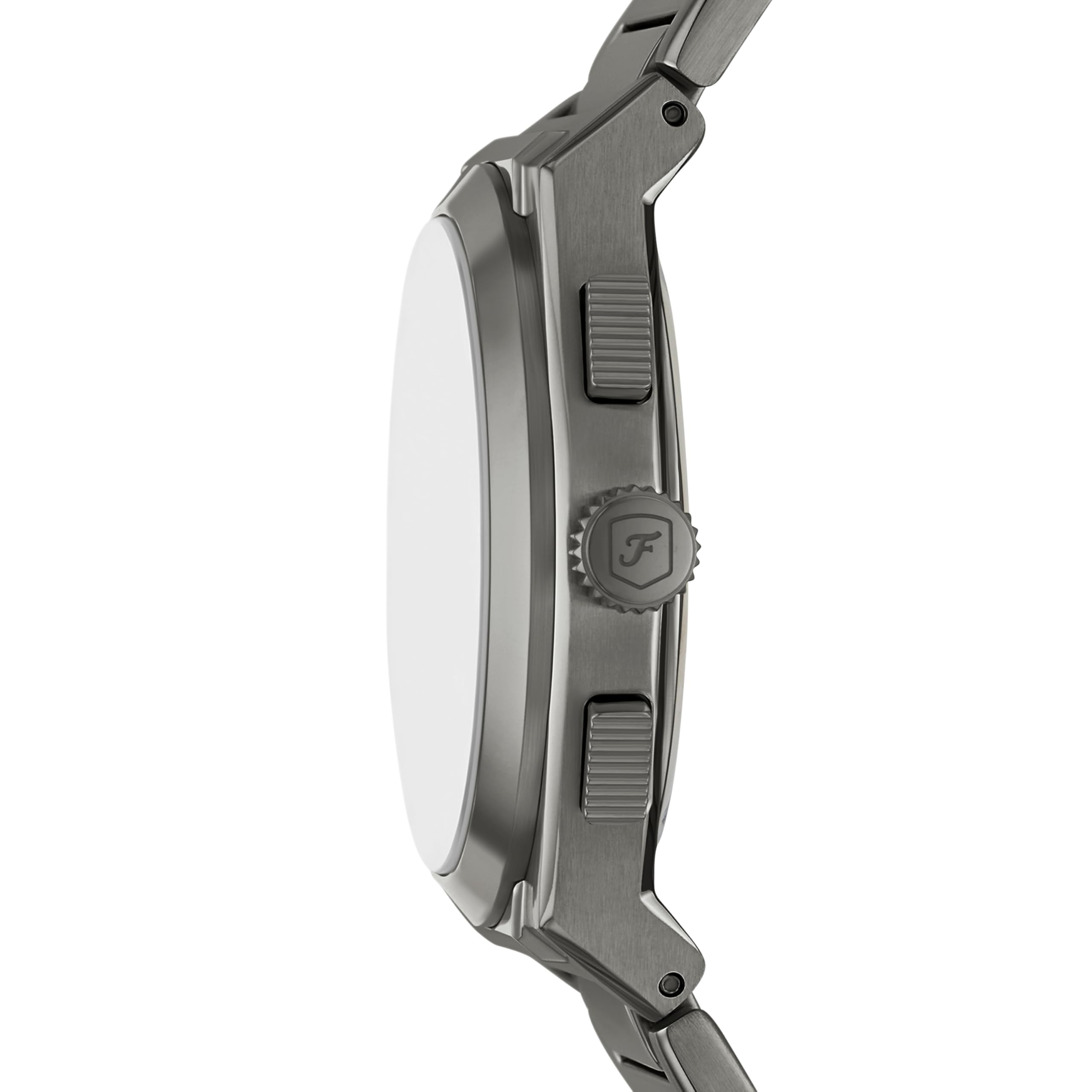 SPORT-INSPIRED DESIGN: This 44mm Fossil watch for men features a textured dial, three-hand date movement and quality bracelet; sporty and sleek, it recalls vintage roadsters, and its sunray steel build ensures durability