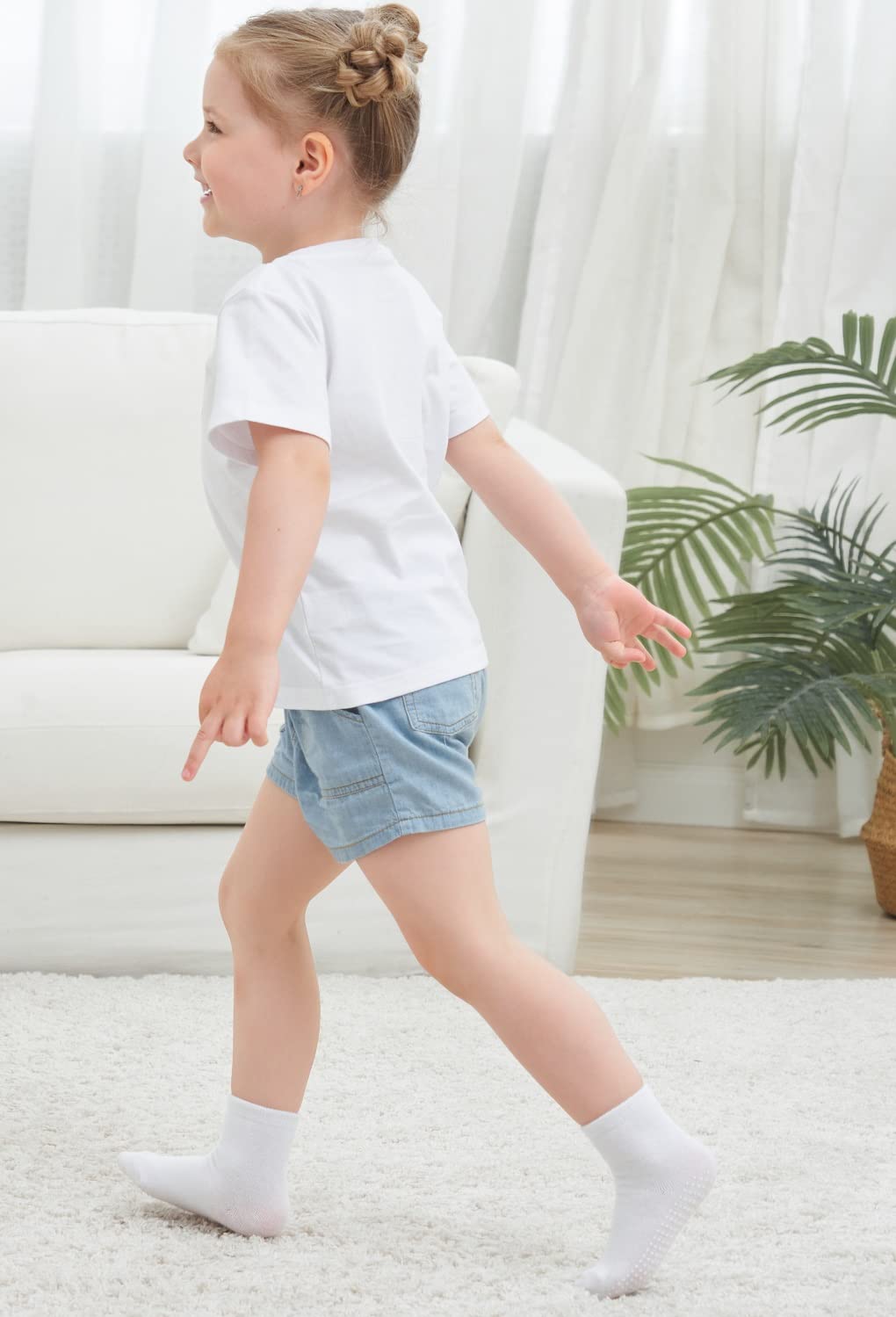 Package includes 9/12 pairs of non slip crew socks to easily match with multiple outfits. They are available in various sizes including 0-6 months & 6-12 months infants, 12-36 months toddlers, 4-7 years little kids to suit your child`s growing needs