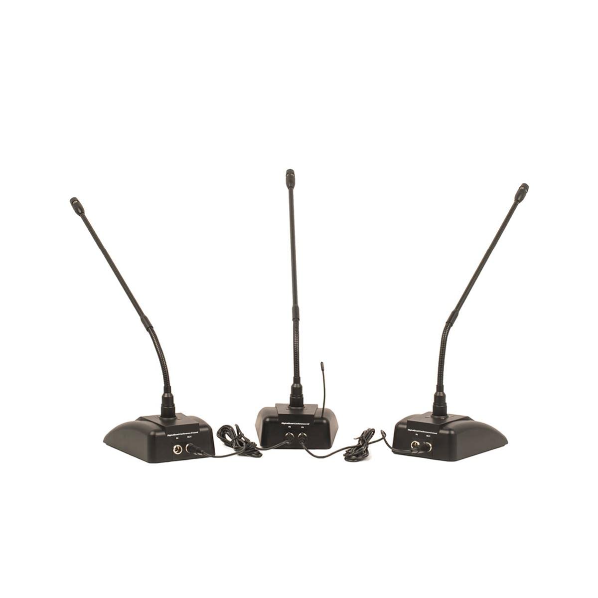 VOCOPRO digital conference microphone system is a plug-and-play system that can be set up in a breeze. Operating in the future proof 900 MHz band with 16 unique frequencies designed not to interfere with each other. The design has been revised in the new V-2 digital conference microphone base, which is capable of plugging in two more wired conference microphones. This will expand the system to support up to 48 Conference microphones. This innovative way of mixing wireless and wired conference microphones give users the best from both worlds. Expanding the capacity without occupying more wireless frequencies, while still enjoying the benefit of running no wires to the receiver.