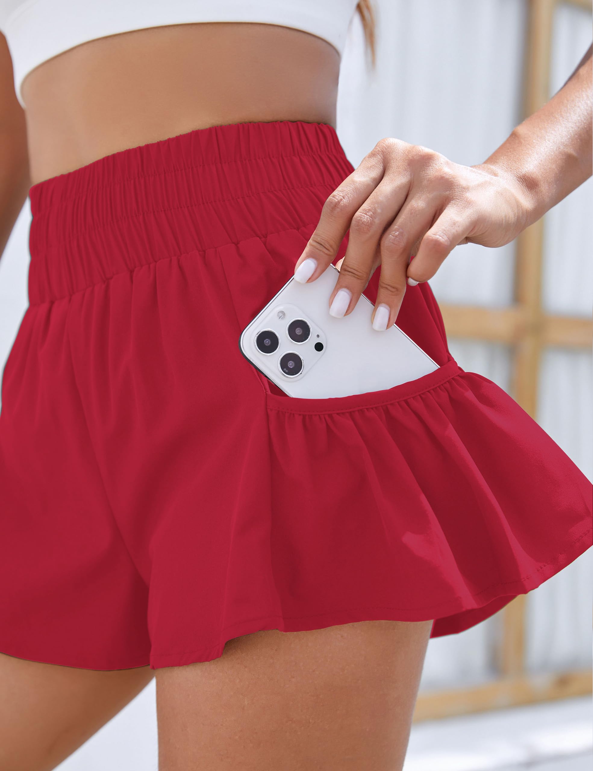 【Design】This gym shorts is featuRed with Super High Waist, Cute Side Pockets, Loose Fit, Lightweight and Quick Dry Fabric