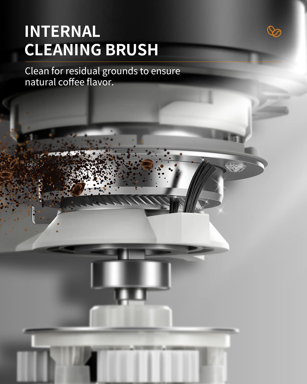 [ UPGRADE ANTI-STATIC CONICAL BURR COFFEE GRINDER ] - The anti-static technology prevents the grounds from sticking to the coffee chamber and creating a mess. It allows a smooth flow of coffee grounds for an improved experience.