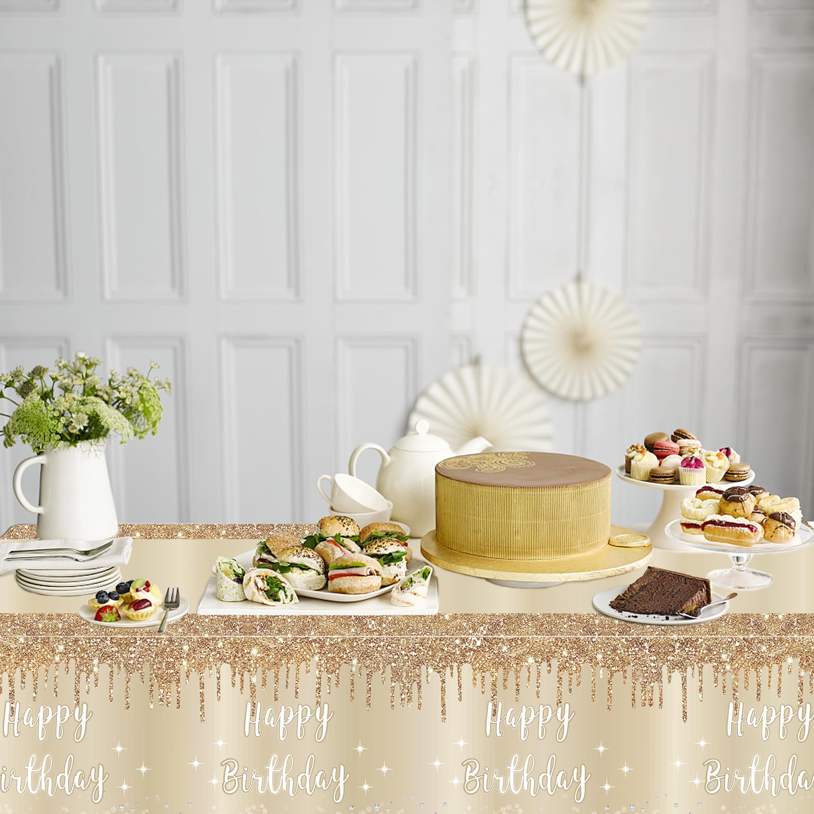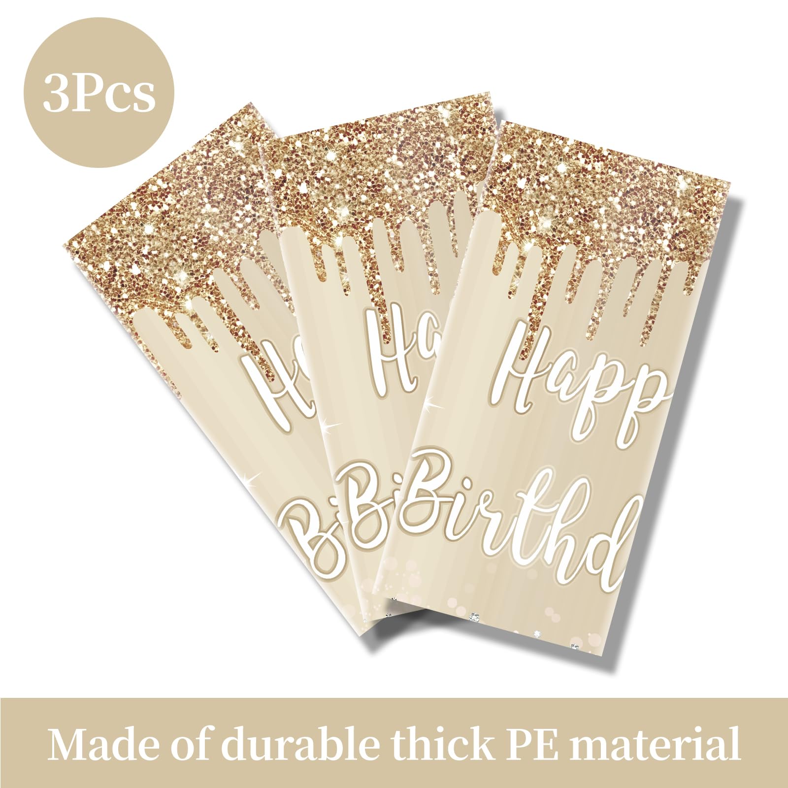 [Package includes] -3Pack White gold Happy Birthday tabletop decorations for women girls, 54 x 108 inches, enough to decorate your birthday party, suitable for covering most rectangular tabletops [Note: Please measure the table size before purchasing]
