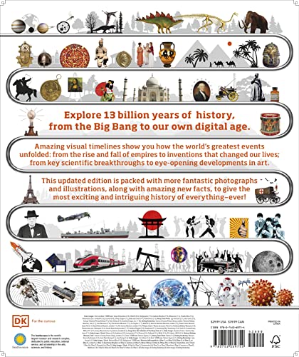 From dinosaurs and Vikings to the history of robots and espionage, discover incredible world history in this lavish collection of timelines. Jam-packed with surprising facts and amazing details, such as the most bloodthirsty pirate of all time and the first crime to be solved by studying fingerprints, Timelines of Everything will take you on a whirlwind journey through an illustrated history of time, from the Big Bang to the modern world. More than 120 timelines will provide children with all the general knowledge they need – and even some surprising trivia they don’t! Must-know topics and alternative history are showcased with beautiful, detailed illustrations and straightforward, easy-to-read text. With timelines on a diverse range of subjects, Timelines of Everything is the ultimate guide to history for kids. This educational book for children aged 9-12 features: - The entirety of prehistory and history, from the creation of the universe to the modern day. - A chronological structure, with six chapters covering Prehistory, the Ancient World, the Medieval World, the Age of Exploration, the Age of Revolution, and the Modern World. - Big, bright, bold timelines bring history to life and entice children to dive in and discover the past. - More than 130 separate timelines on a diverse range of subjects. - Pages on events and eras are scattered between pages on themes, such as medicine, dance, and trains. The first edition of Timelines of Everything has sold more than 280,000 copies worldwide since its publication in 2018. Now the book has been fully updated, with new information and images to cover recent events, all checked by experts, to ensure it continues to be an essential reference for kids. Whether you want to know key breakthroughs that set the Industrial Revolution in motion or defining moments in the history of fashion, you’ll find it all here! Explore the series! If you like Timelines of Everything, why not check out other our exciting titles in the Timelines series? Explore the unique collection of visual timelines which bring big topics to life. Discover leaders, legends and legacies in Timelines of Black History, uncover the natural world with Timelines of Nature and explore key milestones and breakthroughs with Timelines of Science.
