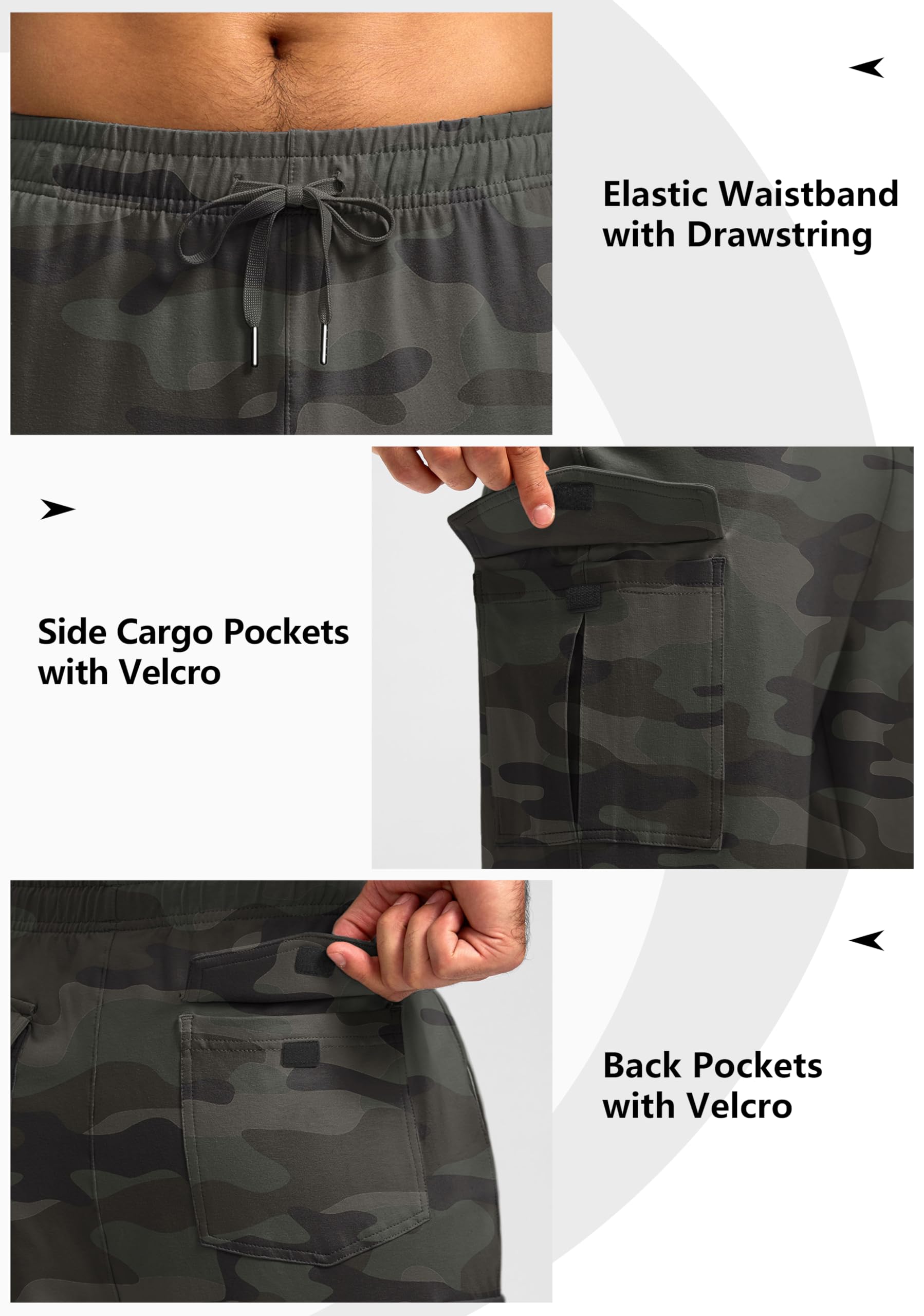 Cargo Pockets: Total 6 pockets including 2 slant pockets and 4 cargo pockets with velcro, provides security storage for your phone, wallets, credit card, keys, etc.