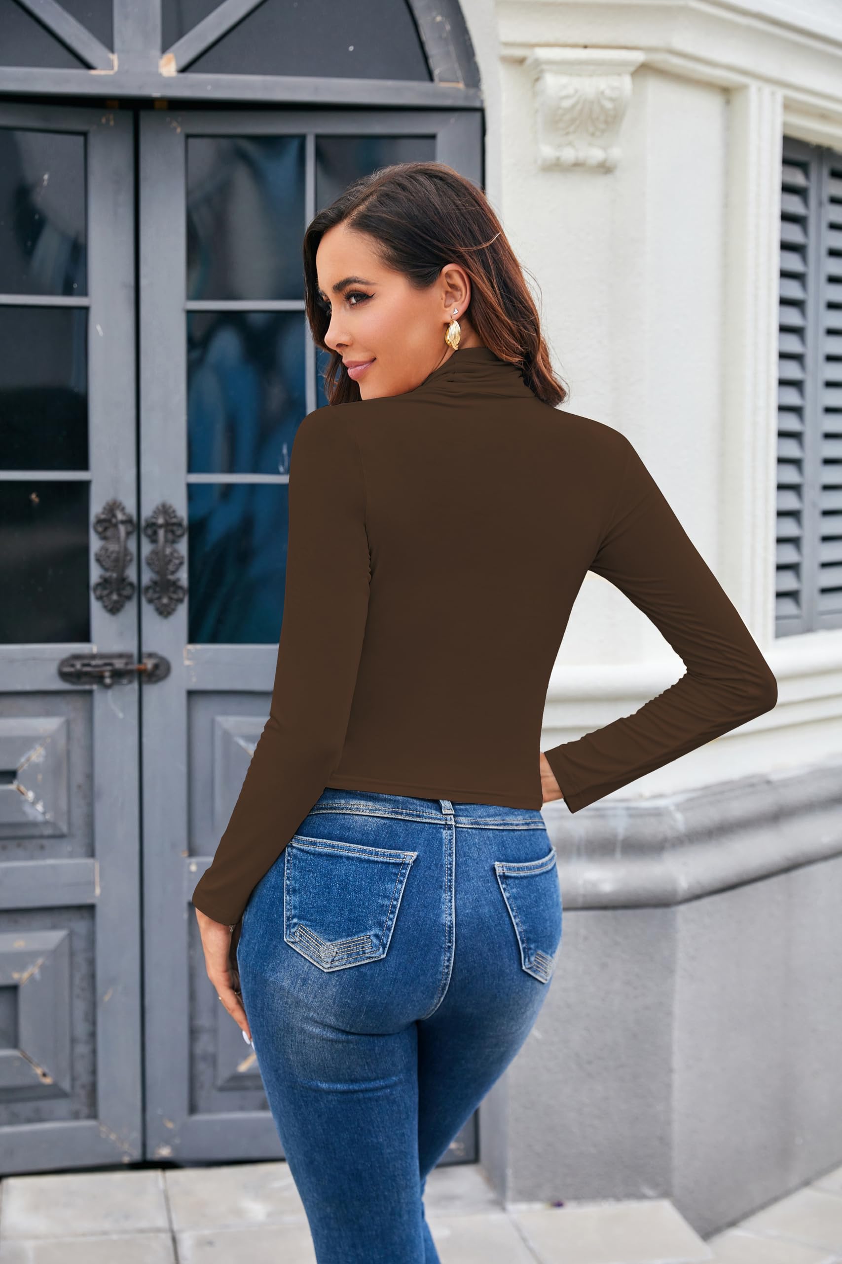 Style--Long Sleeve, Turtleneck, Crop Top, Solid Color, Slim Fit, Stretchy Fabric.