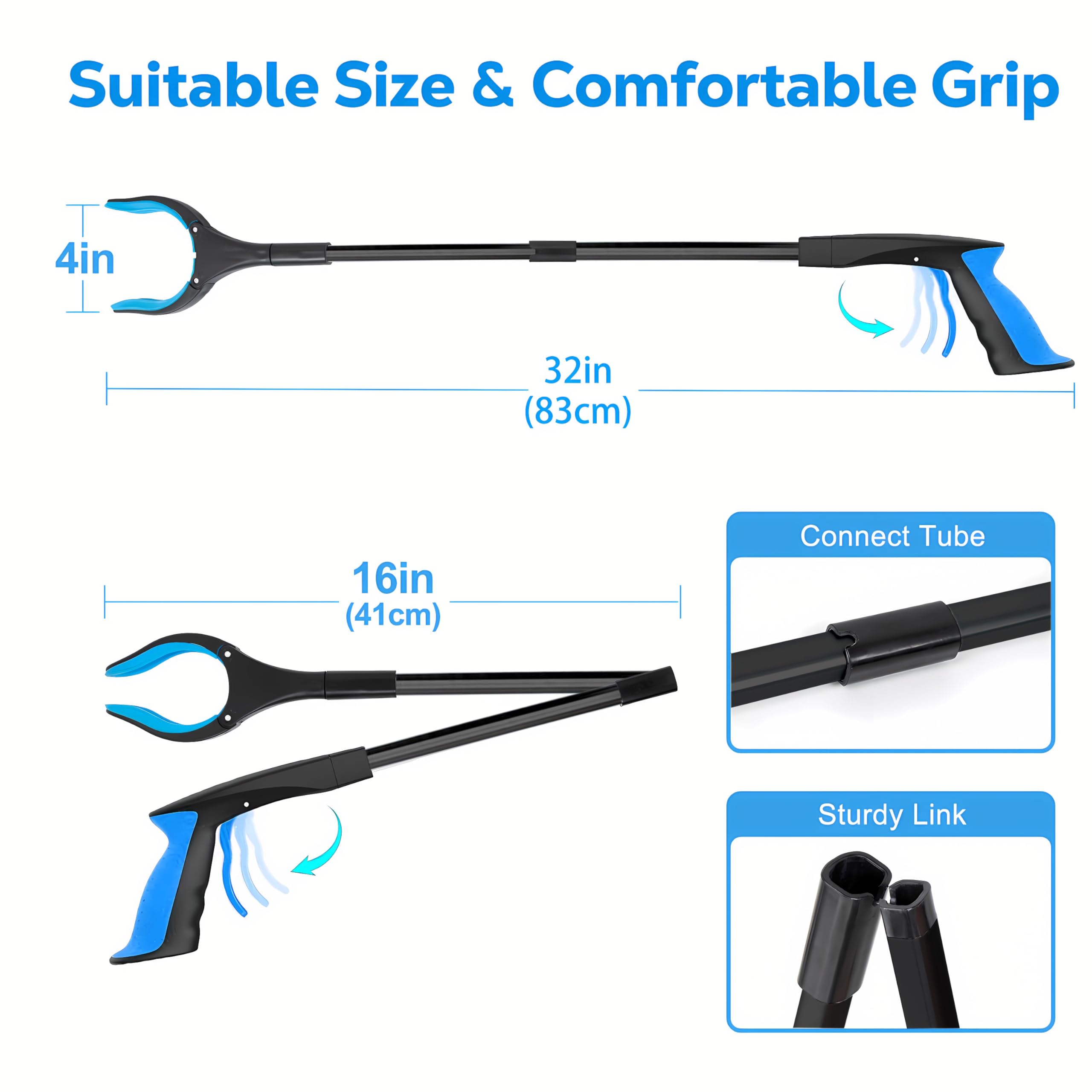 Foldable & Portable: The grabber reacher tool is foldable for easy storage and transport. It can be easily stored in your backpack, purse, or car.