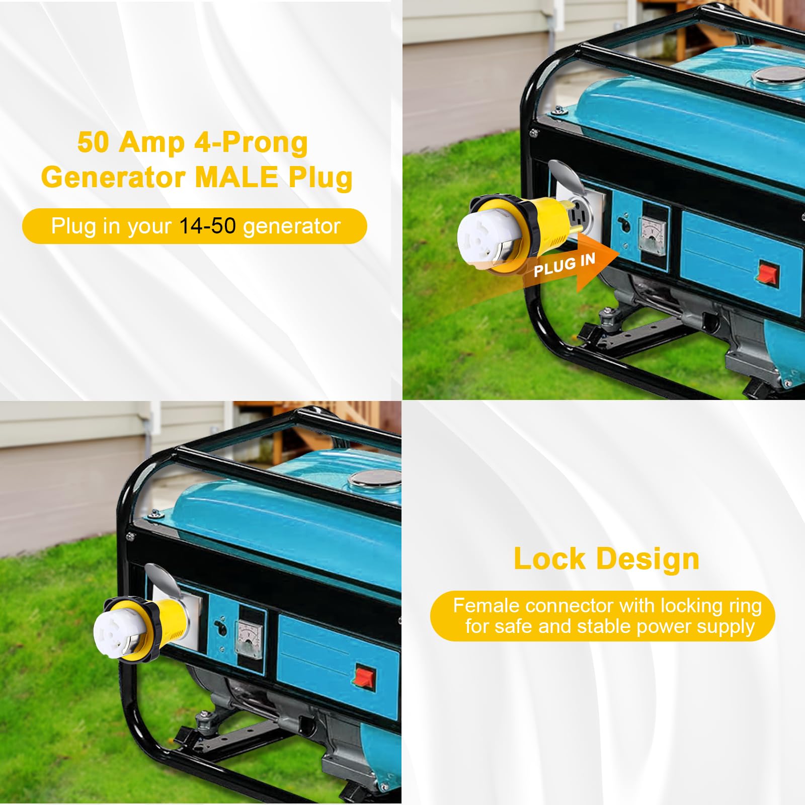 【50 Amp 14-50P Generator Plug】4-prong NEMA 14-50P male plug for 14-50R receptacle, commonly used to connect generators