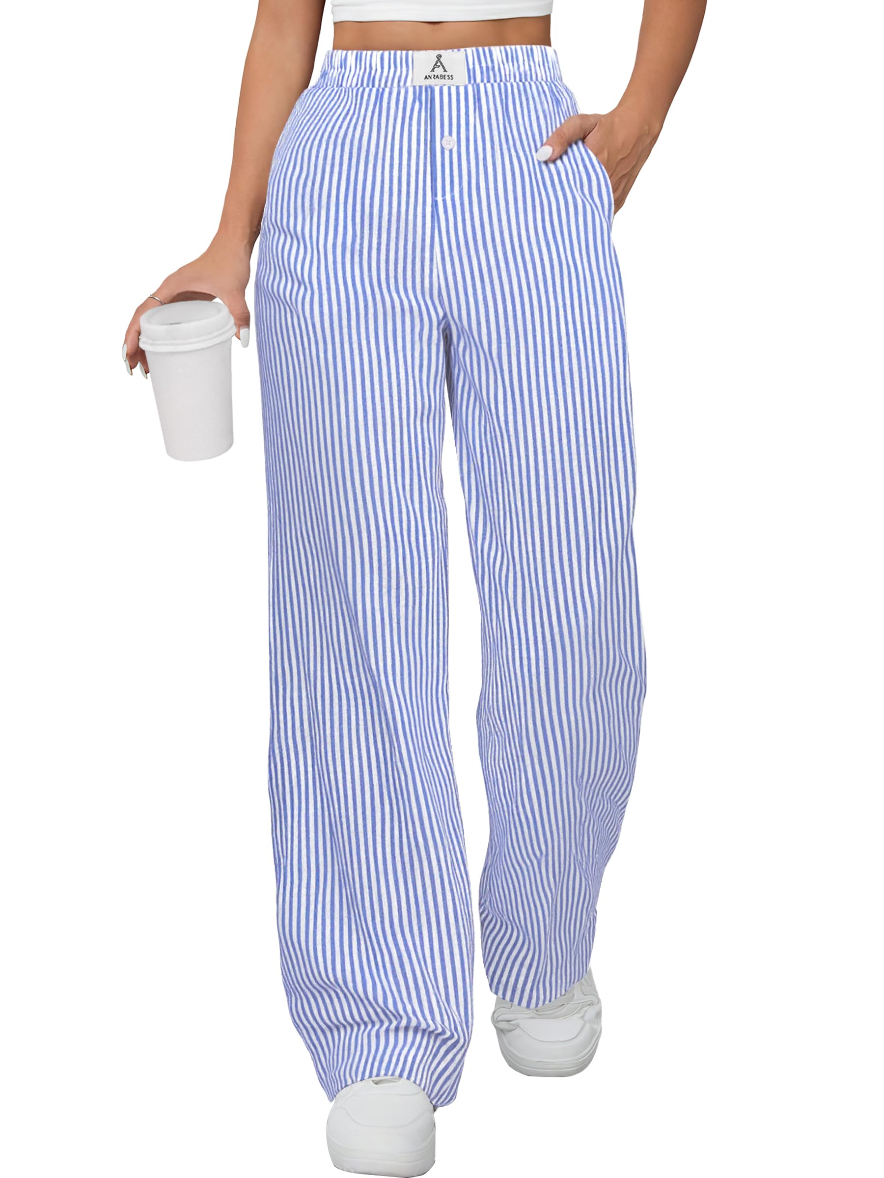 Features - Women's fall pajama pants, lounge trousers with pockets, plaidοΌstripe design, elastic waist, lightweight breathable. This womens pants perfect for daily wear, home, workout, beach, travel.
