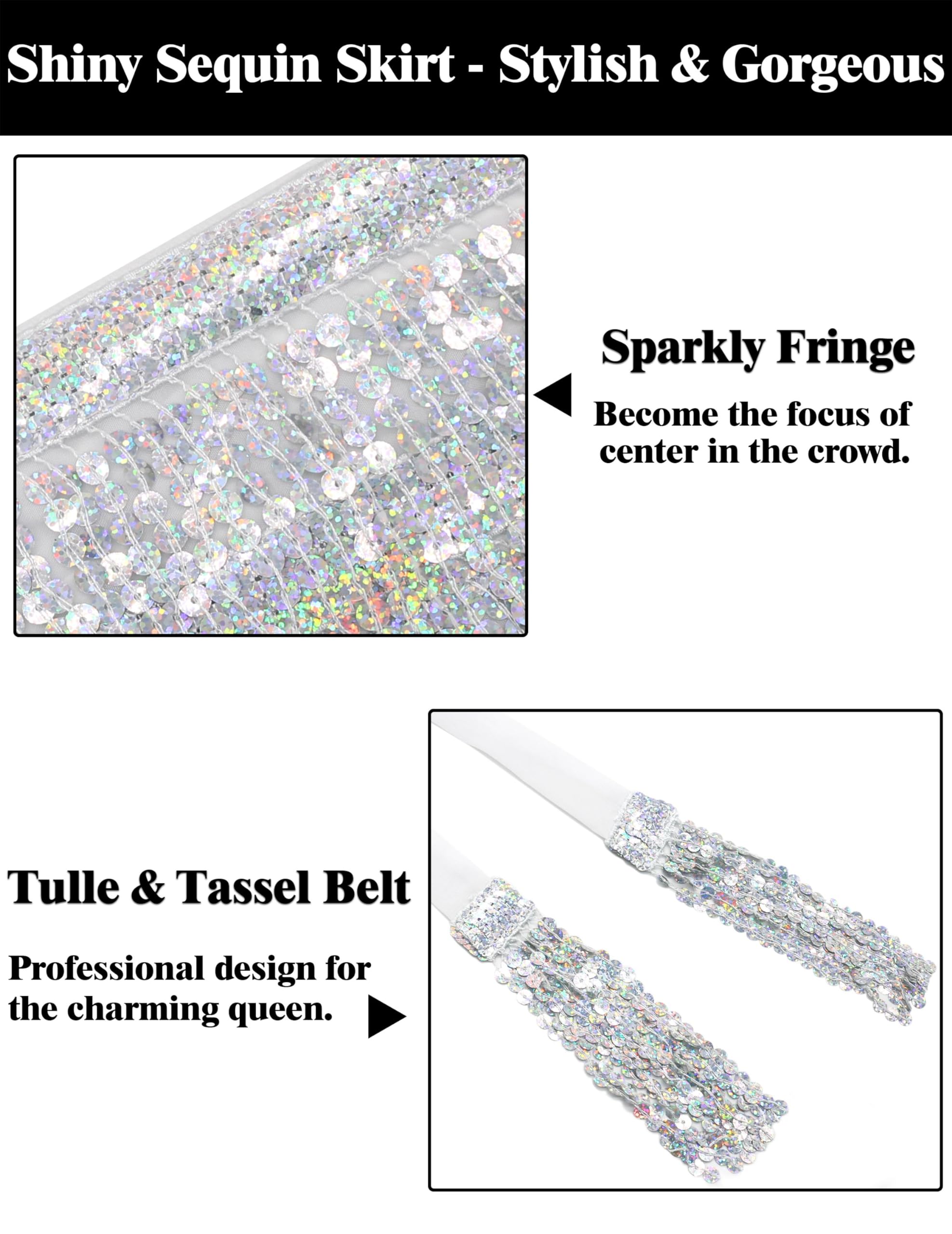 HIGH-QUALITY MATERIAL: Our sparkly skirt is made of excellent 100% Polyester with beautiful fringes and sequins, which is lightweight, skin-friendly and durable. Besides, the tulle lining under the sequins is comfortable and breathable, so you will feel great when you wear this sequin skirt. And we suggest to wear the shorts or leggings under the sparkly skirt to ensure full coverage and comfort!