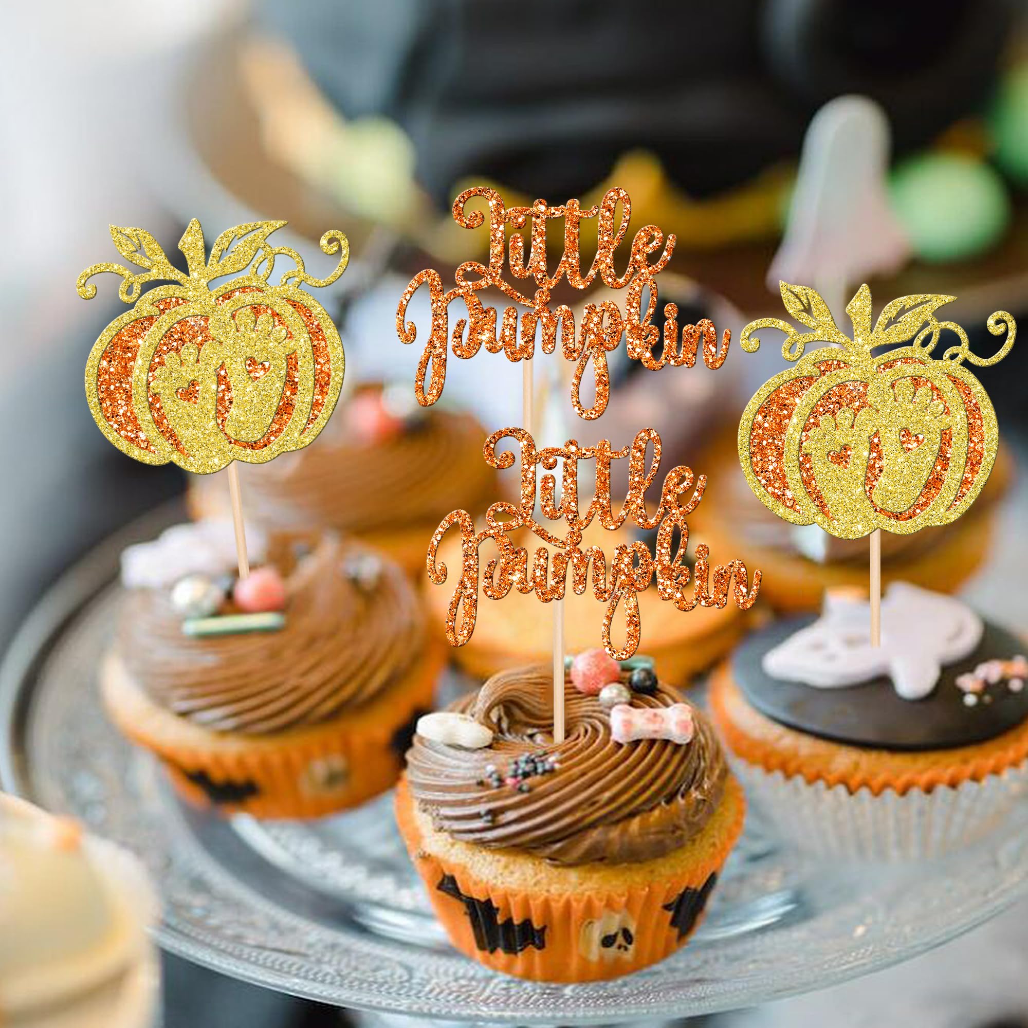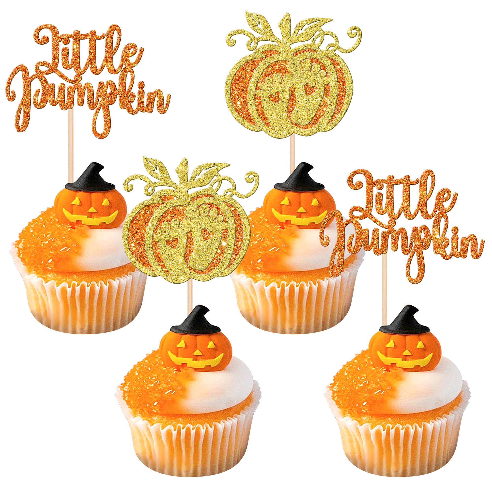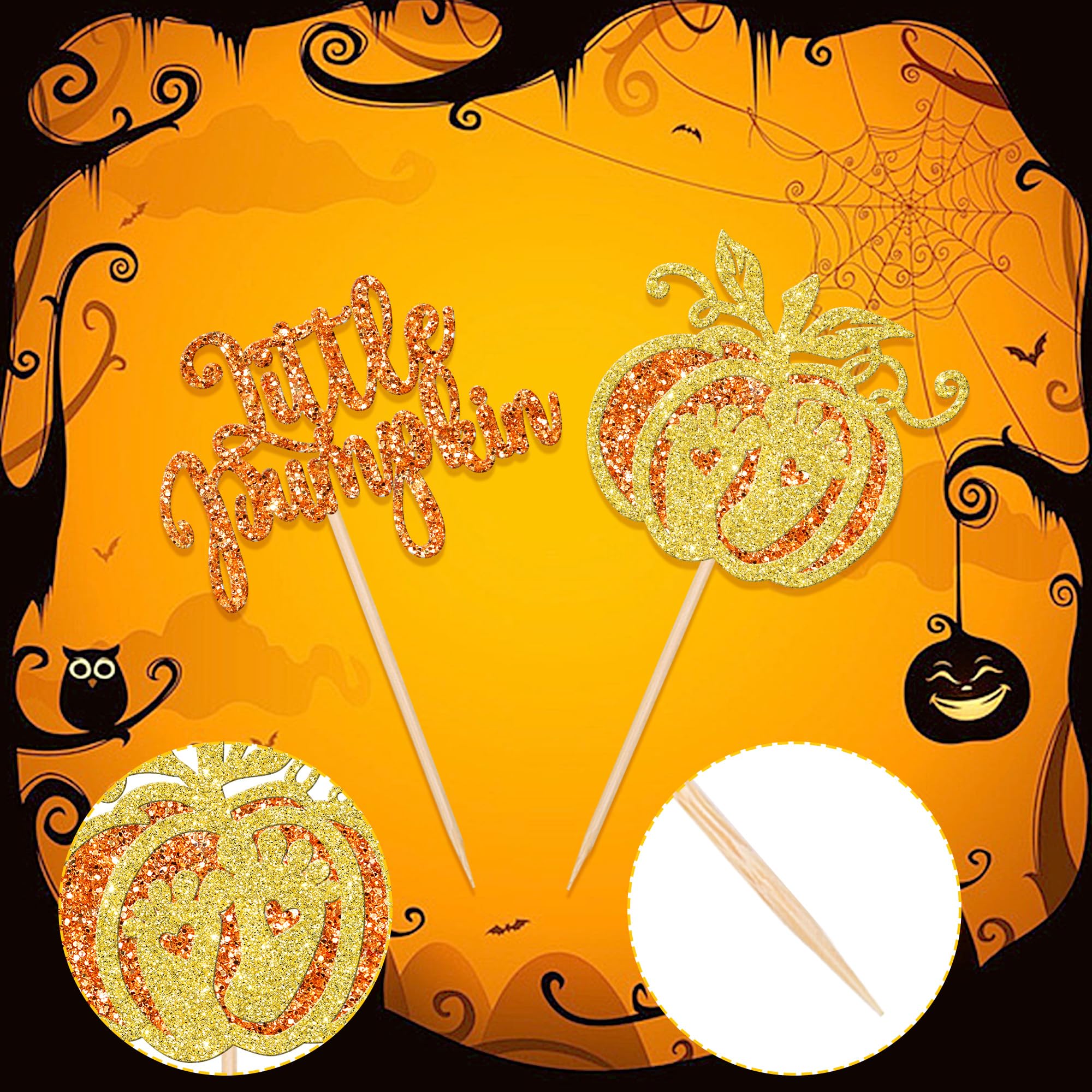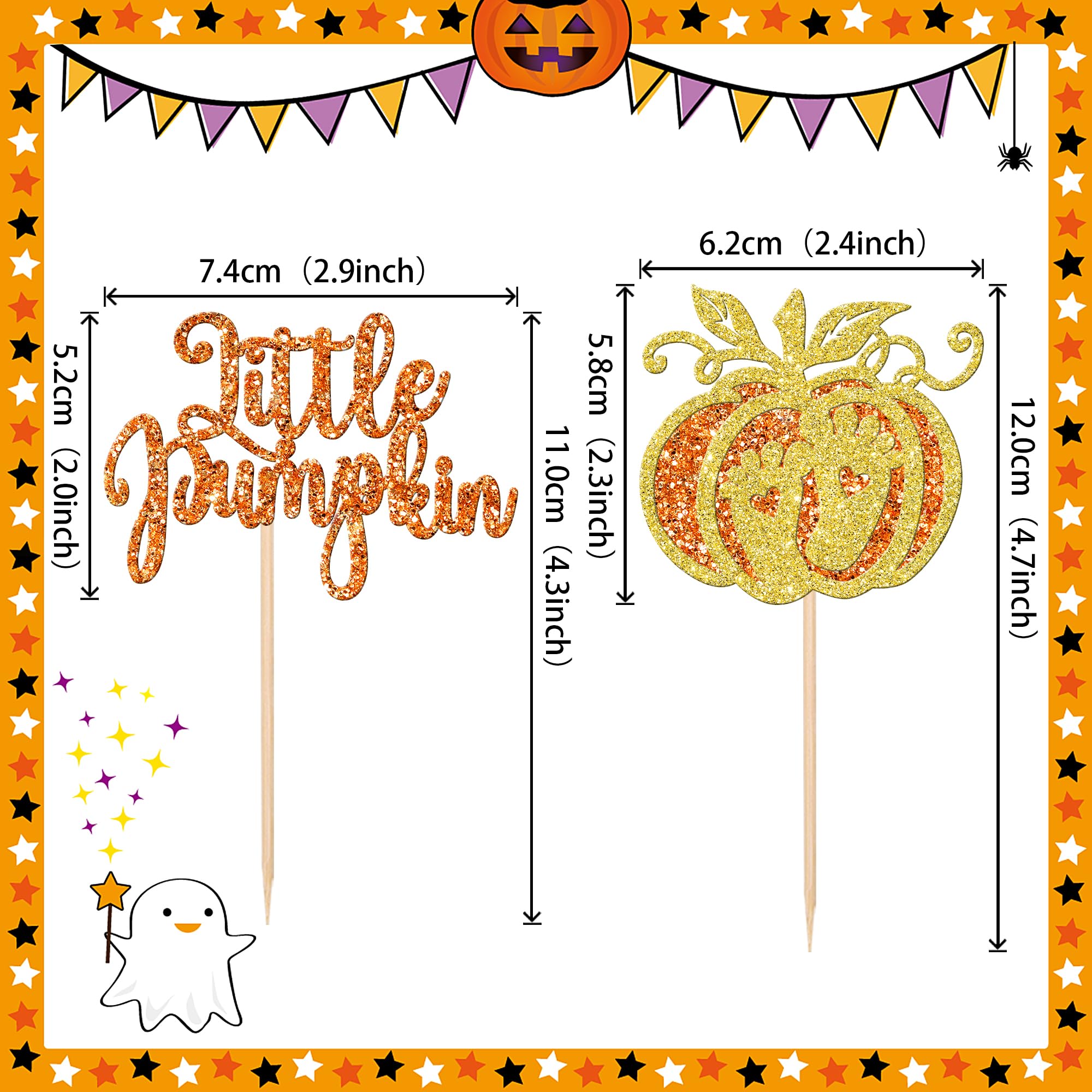 24 PCS Little Pumpkin Cupcake Toppers Orange Glitter Baby Feet Pumpkin Cupcake Picks Baby Shower Little Pumpkin Cake Decorations for Fall Harvest Theme Baby Shower Birthday Party Supplies Perfect for little pumpkin theme party, fall harvest theme party, baby shower theme party, kids birthday theme party, thanksgiving party cupcake decorations supplies. Pack of 24 pcs, 12 pcs of each design. The size is 2.9*4.3/ 2.4*4.7 inch ( with stick ) Made of high quality paper card stock,thick and sturdy. These cupcake toppers are single glitter, the back is white, and they are intended for decoration only, please do not put them in oven or microwave. If the item you received has any defects, please contact us immediately.we will deal with it within 24 hours.