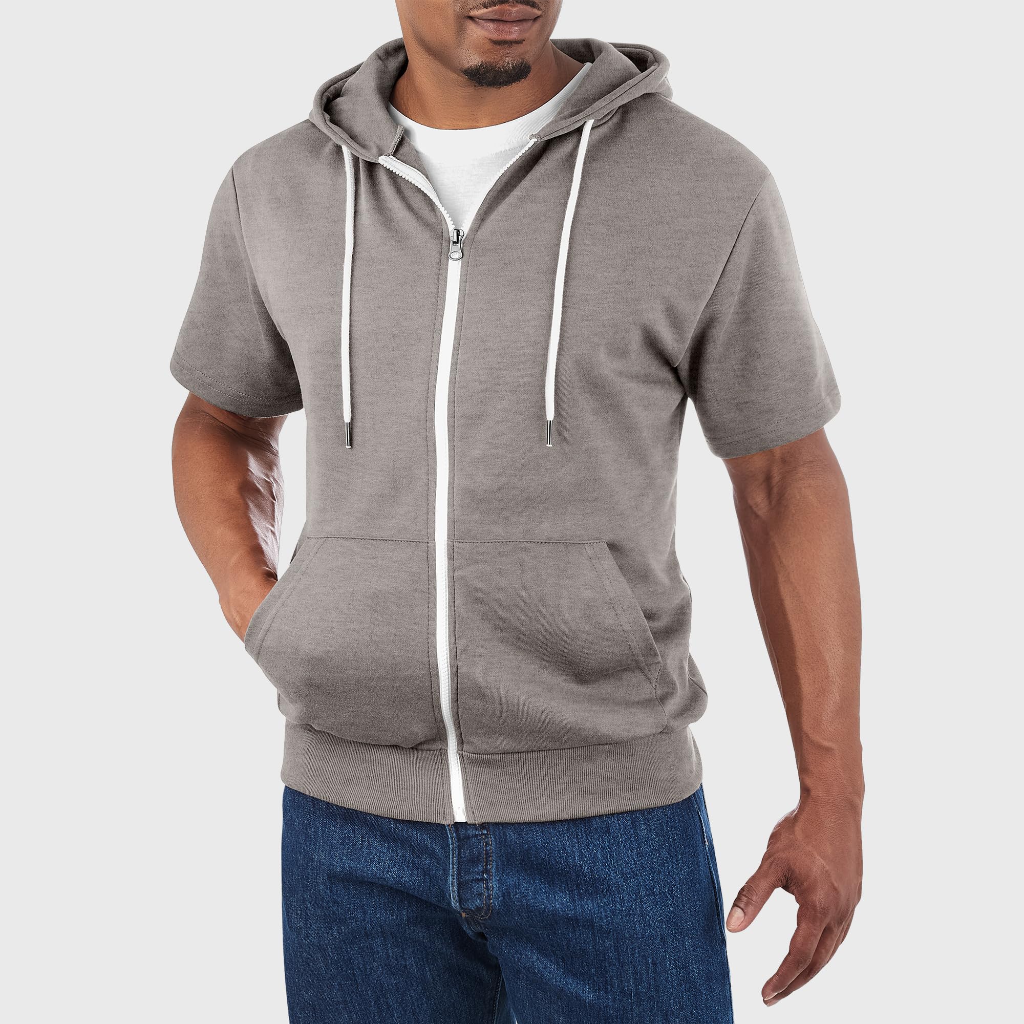 Model Number DCF007: Modern Slim Fit, Lightweight, Short Sleeves, Kangaroo Pocket for Convenience, Contrast Color Design (White Zipper/Drawcord)