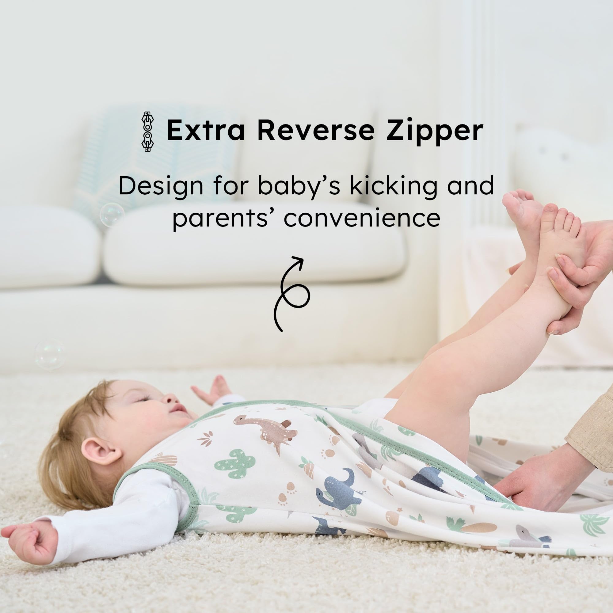 Sustainable Double Zipper: We apply a two-way zipper on the sleep sack for a more convenient use for changing diapers. Since a good zipper for the sleepsack is as important as a proper lid for the themal mug. We equip the sleep sack with high quality zipper, which is smooth even after tens of thousands of uses.