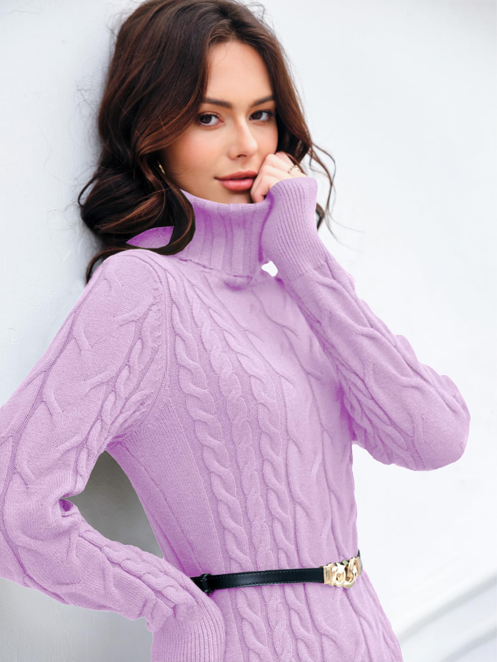 Style: women's turtleneck long sleeve sweater dress / women's cable knit sweater dress / slim fashion sweater / half body sweater dress / fall sweater dress / knitted sweater dress / feel super soft / solid color / casual style
