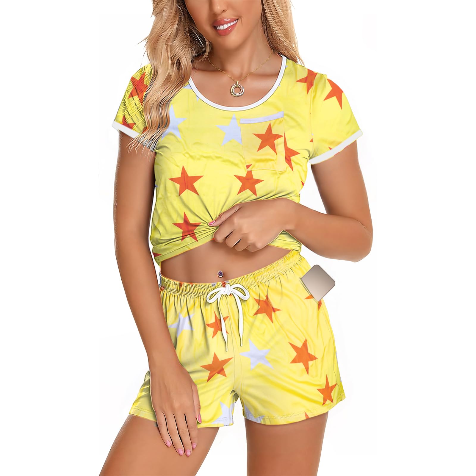 Convenient 3-Pocket Design – Features a chest pocket on the short-sleeve sleep top and two side pockets on the lounge shorts, offering stylish and functional storage for essentials.