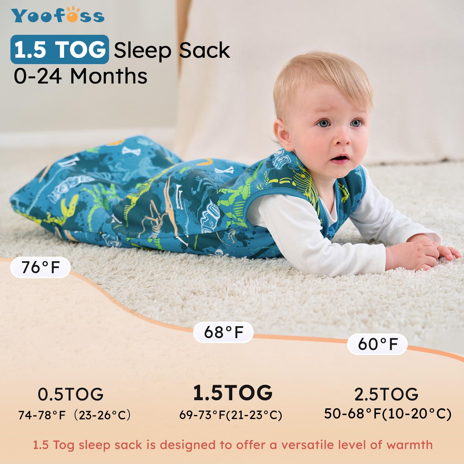 4-Season Use: 1.5 Tog sleep sack is suiable for moderate temperatures from 69 to 73°F as an ideal option for autumn,early winter and spring or taking a nap in air-conditioned rooms during the summer, keeping your baby snug and warm.