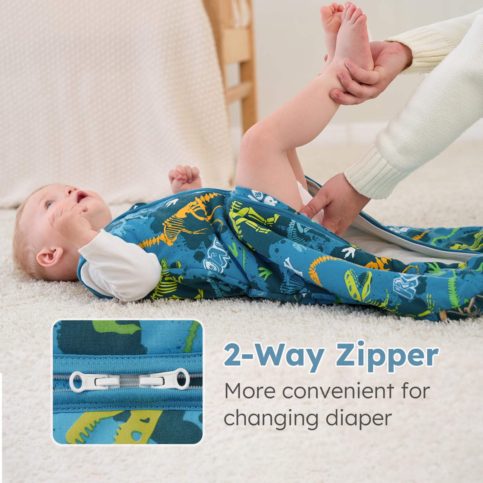 2-Way Zipper and Available Sizes: The top-grade double zipper allows unzip from the bottom for fuss-free diaper changes without disturb baby during the night, and design with zipper garage to protect baby’s face from chafing. There are 4 available sizes for this baby sleep sacks; S for 0-6 Months. M for 6-12 Months. L for 12-18 Months. XL for 18-24 Months.