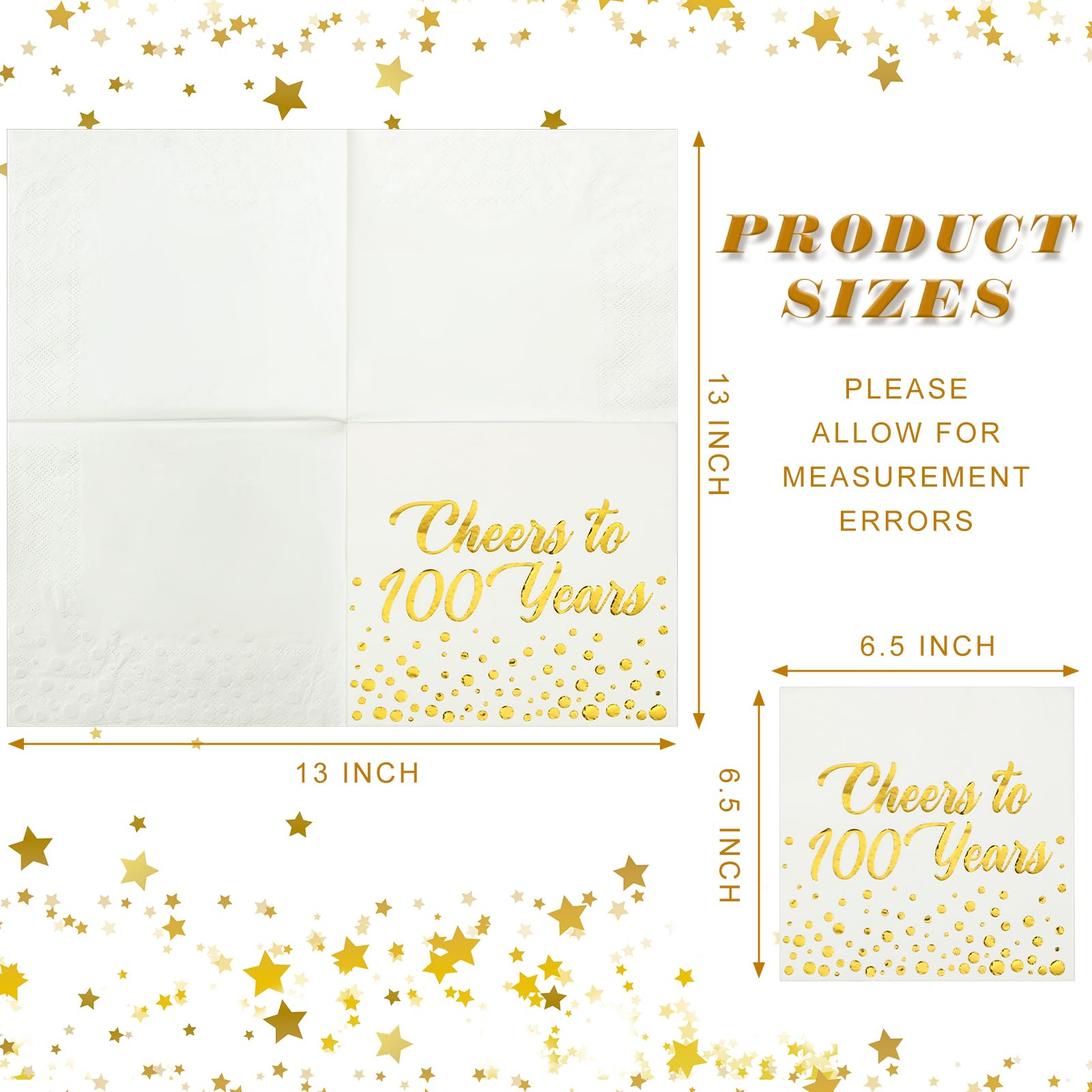 Abundant Quantity and Proper Size: you will get a package of 100 Cheers to 100 Years napkins, ensuring you have enough for your celebration; Each napkin measures about 6.5 x 6.5 inches when folded and about 13 x 13 inches when unfolded, providing ample space for your guests