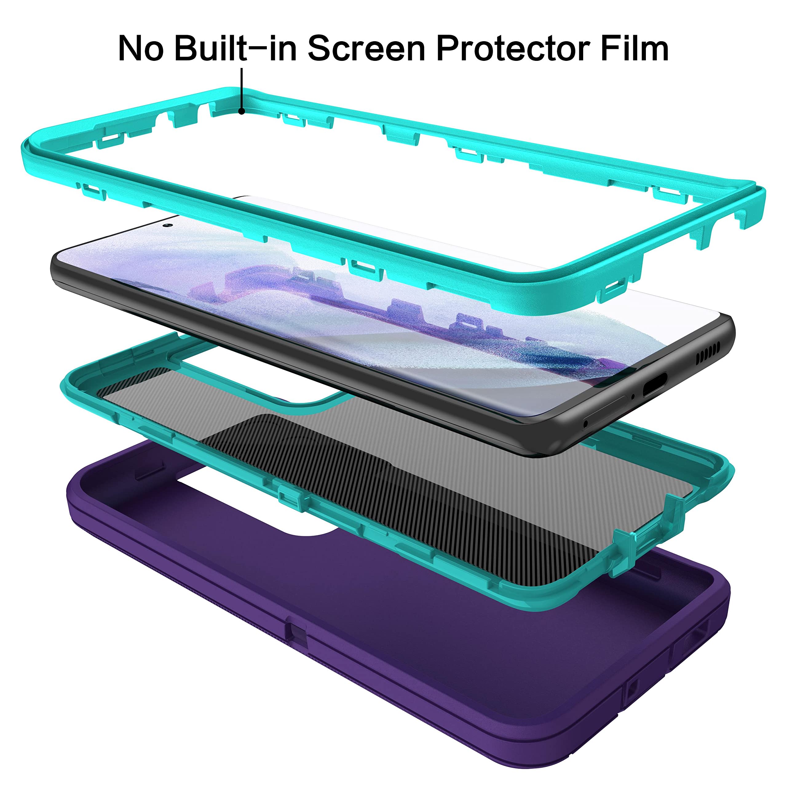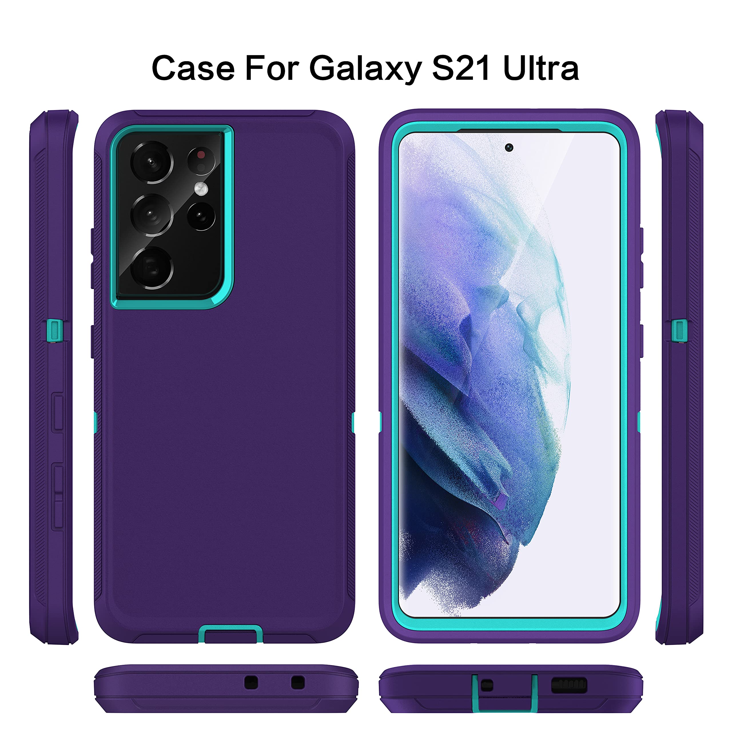Durability: Samsung S21 Ultra case features a triple-layer defense with an inner shell and rugged outer cover to protect against drops, scratches, bumps, and shocks. The unique detachable design offers 3-in-1 protection, including shock resistance, dust protection, and scratch prevention. Provides reliable protection from impacts, withstanding drops from up to 14 feet on flat ground
