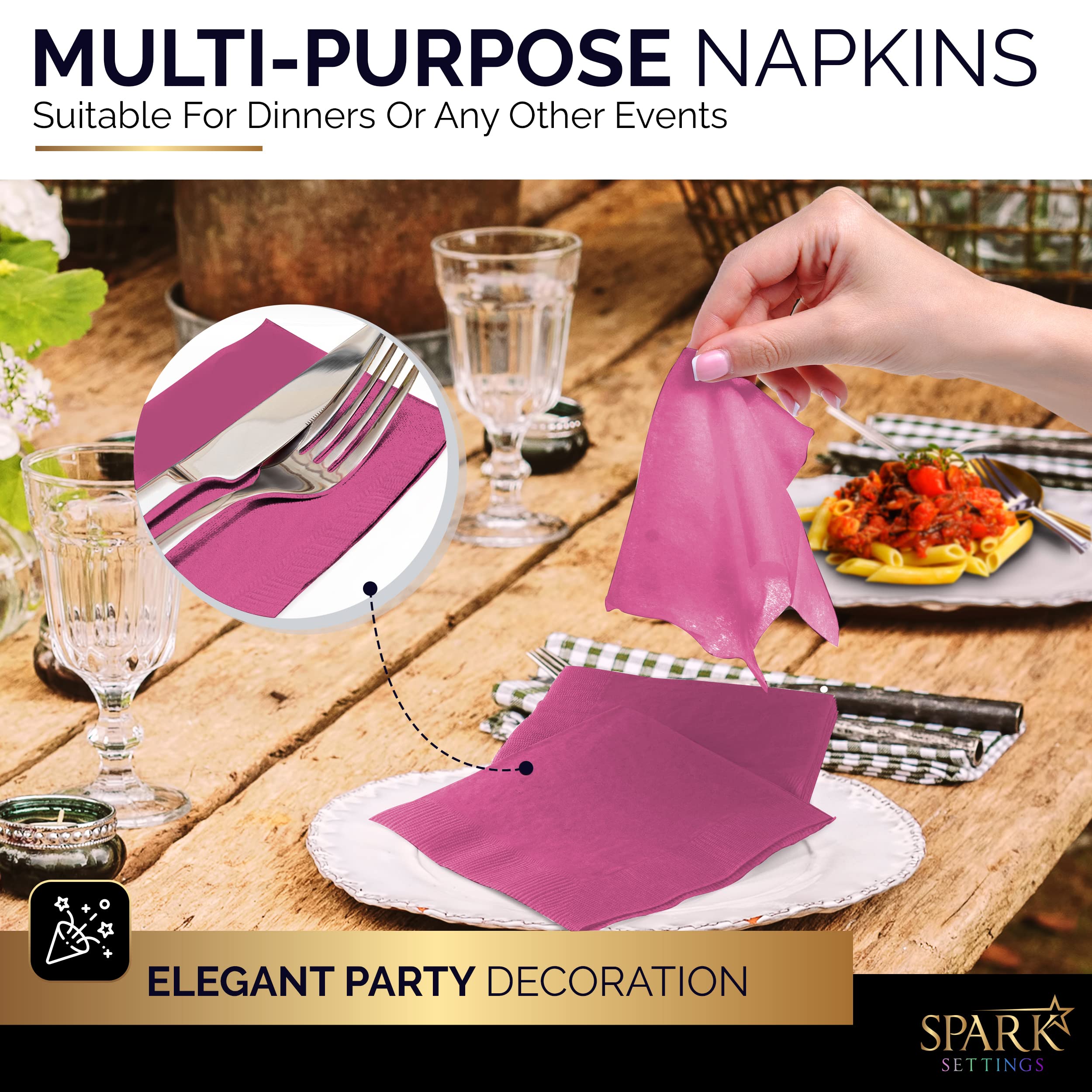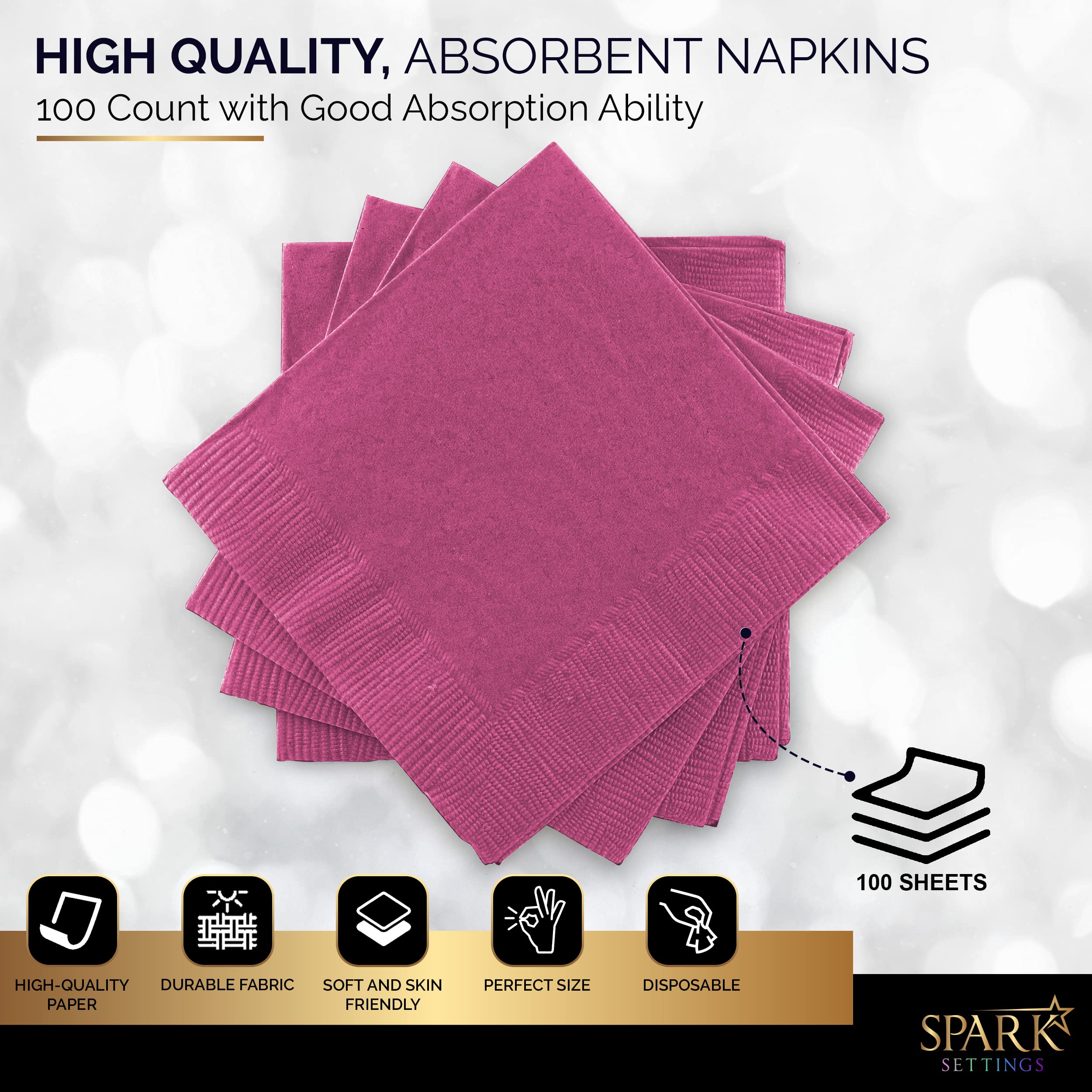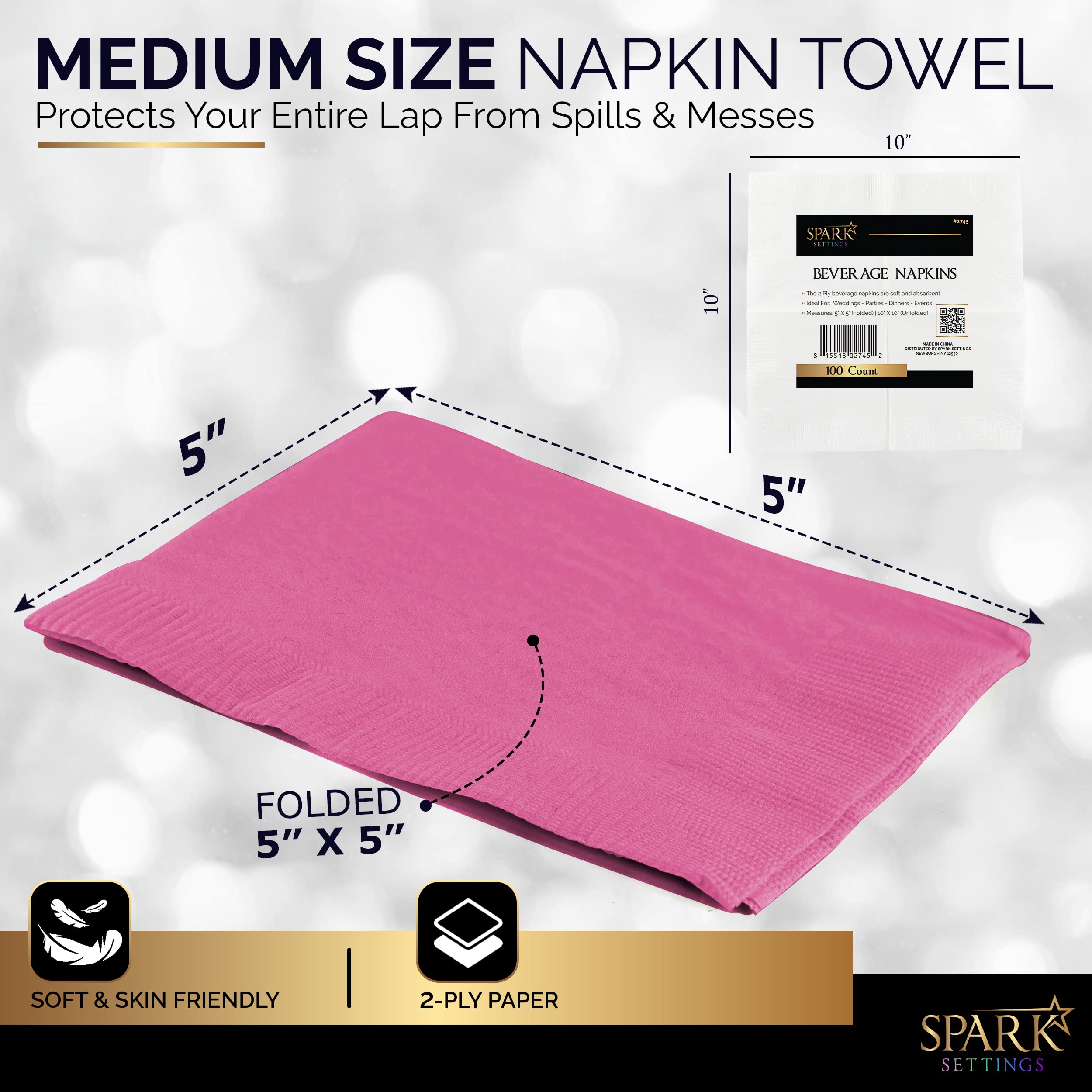 ✓SPECS - Paper cocktail napkins are disposable 2-ply dessert napkins. Paper napkins everyday have bright and vibrant colors black orange clear lime purple white blue green red pink gold burgundy and Silver. Lunch napkins are folded 5” x 5” and unfolded 10” x 10” comes in 100 pack and serve with any beverage.
