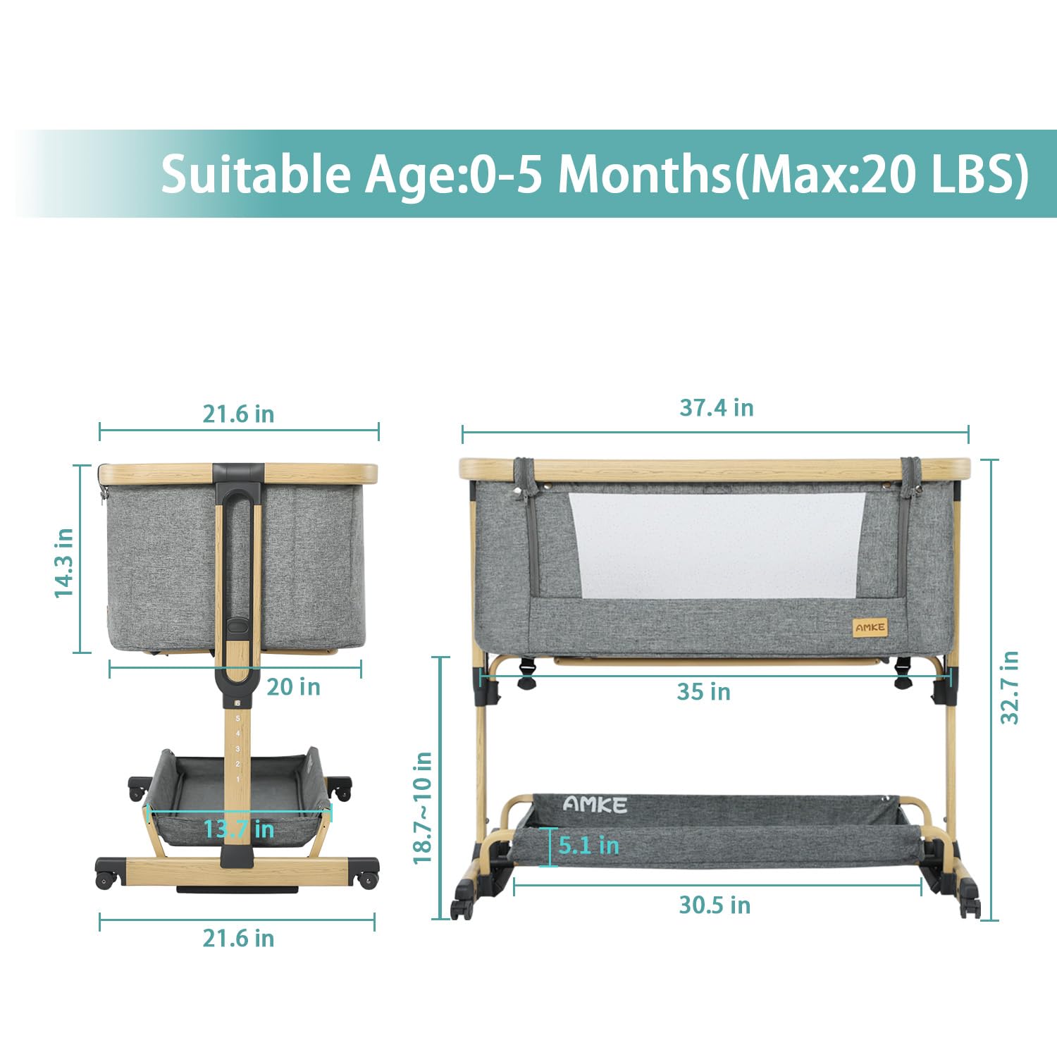 Durable Premium Aluminum Material: Our baby bedside crib is constructed of thick aviation-grade aluminum alloy, making it both lightweight and sturdy. It meets all US safety regulations for baby bassinets, ensuring your baby's safety is our top priority.