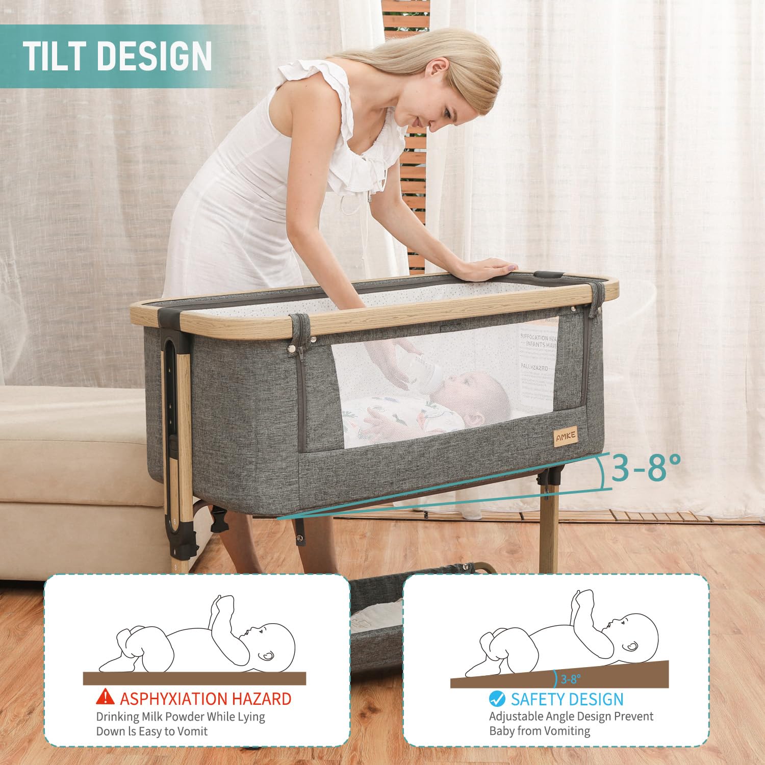 Ideal for Night Feeds: The AMKE baby bedside crib is perfect for night feeds. It features a zipper on the side for easy access, so you can quickly attend to your baby's needs. The mesh construction allows you to keep an eye on your little one and provides excellent ventilation. This feature is especially helpful for nursing moms or those recovering from a C-section.