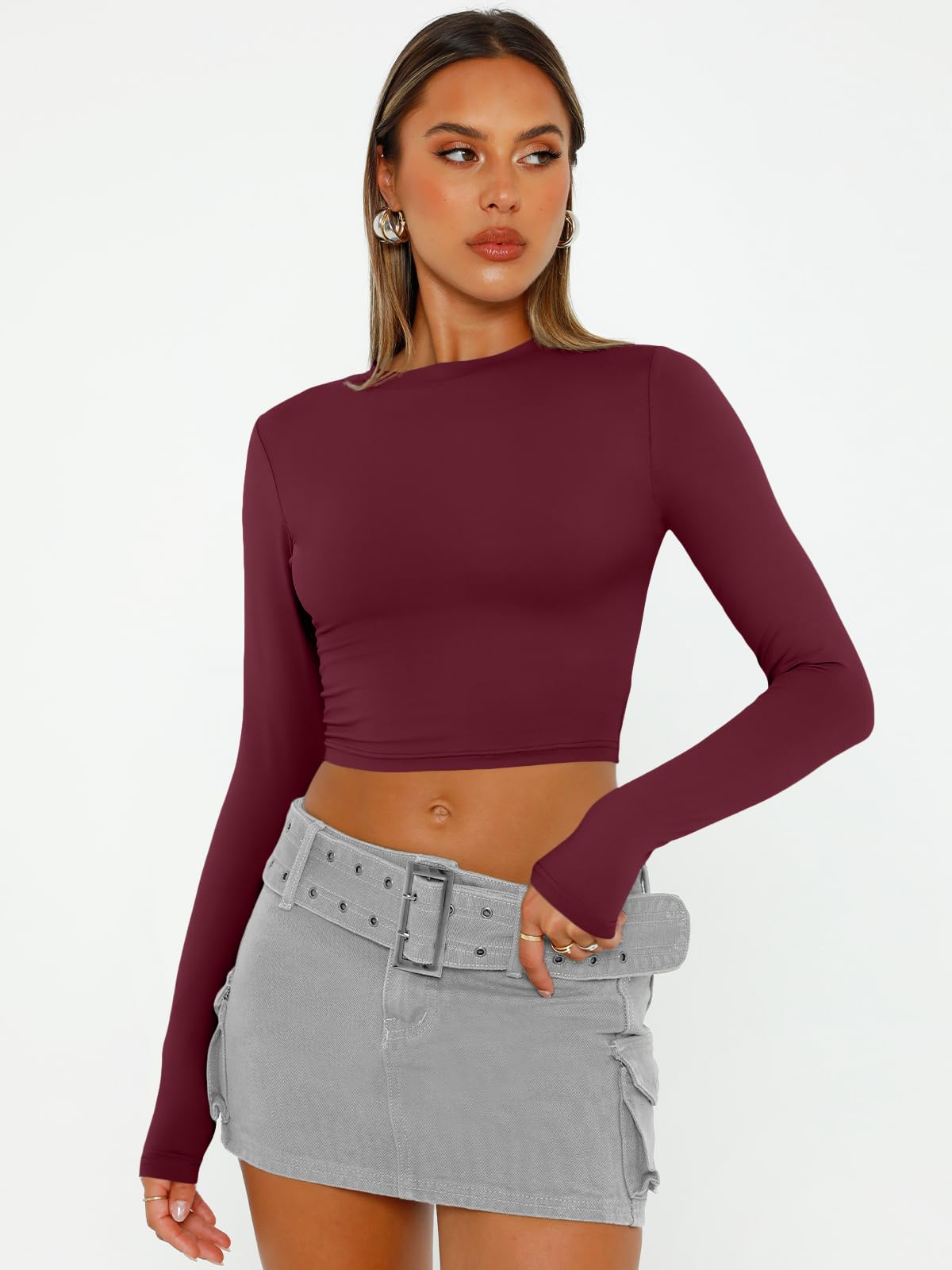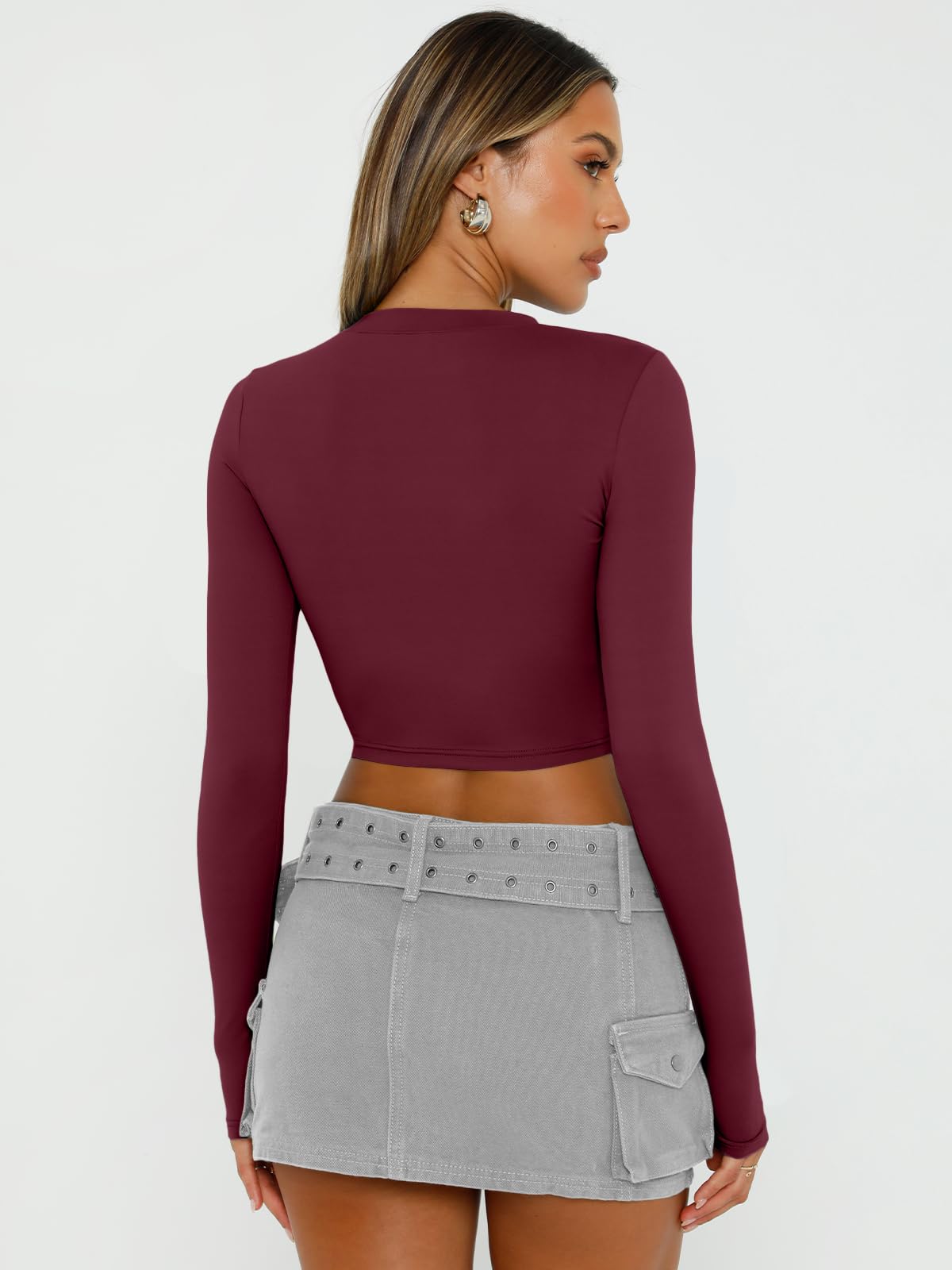 Y2k Design: Cropped and regular style,you can wear it regularly or fold it up like a crop top.cute,slim fitted,casual style,scoop neck,long sleeve shirts.