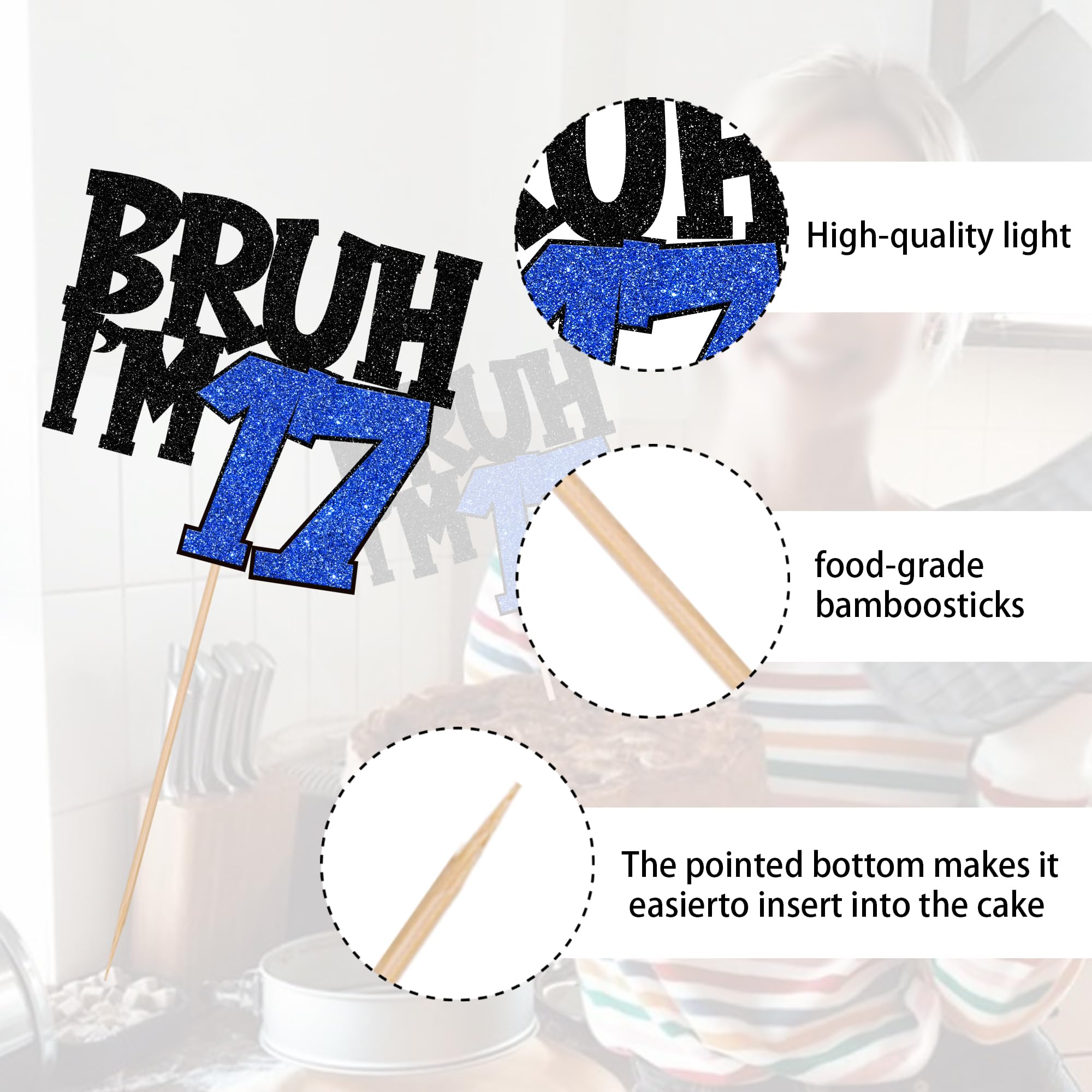 Wide Usages ! The bruh i'm 17 cake topper is perfect for happy 17th birthday theme party, bro i'm 17 theme party, it's my 17th birthday theme party, cheers to 17 years theme party, hello 17 fabulous theme party, funny 17th birthday theme party cake decorations, they can make your cake more attractive and bring the fun to your party.You can also apply them for ice cream, fruits, cookies and other desserts.