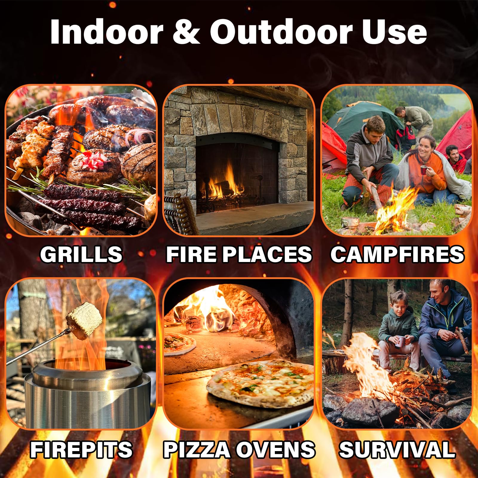 Multiple Purposes: The firestarter is perfect for indoor and outdoor, like BBQ, fireplace, picnic, campfire, camping, fire pits, smokers, stoves, wilderness survival, ignition, hunting , fishing, lighting charcoal and firewood