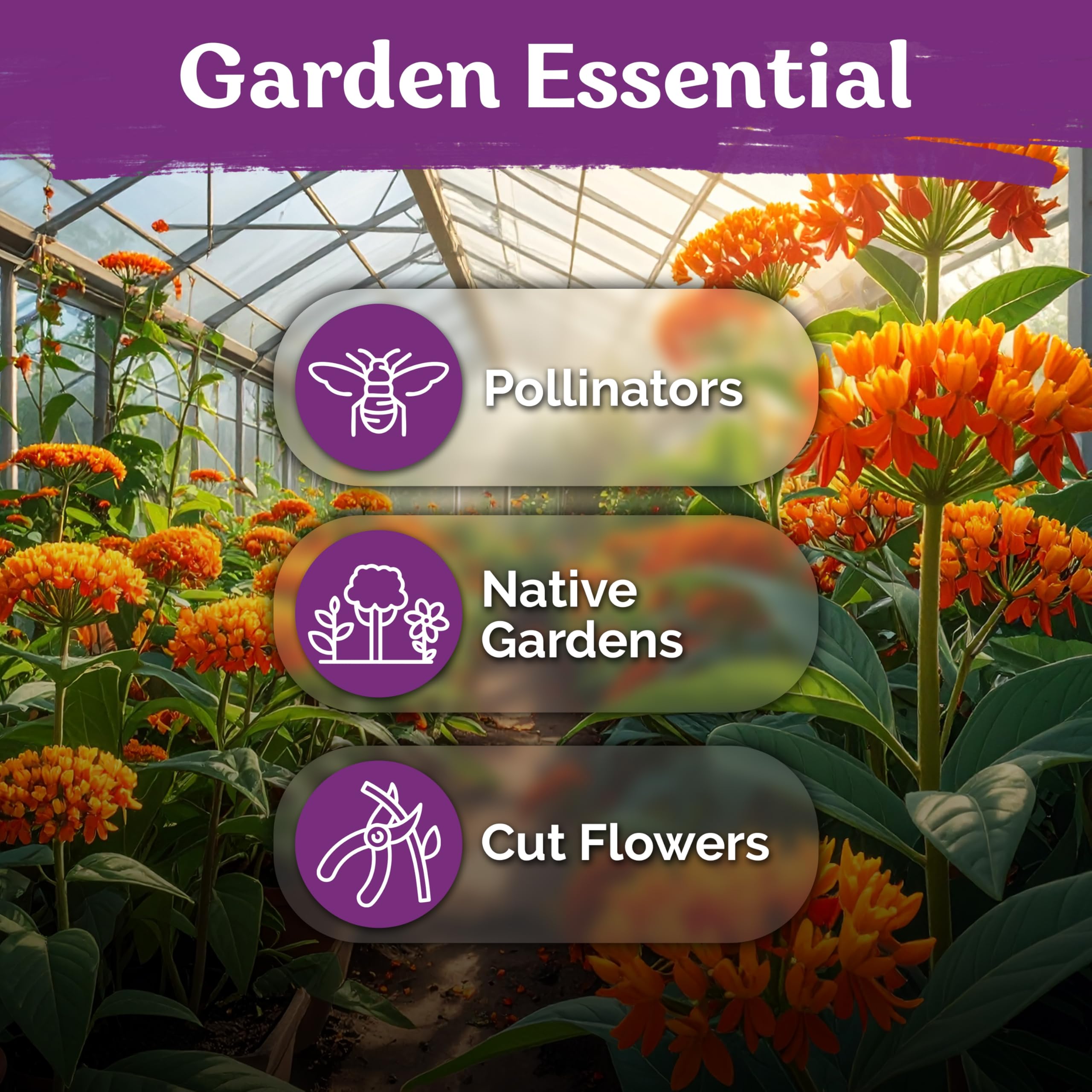 Blazing orange blooms: butterfly milkweed flower seeds grow to 24 inches tall and bloom from early to late summer; attracts honeybees, butterflies and hummingbirds - bright flower garden seeds to plant outside.