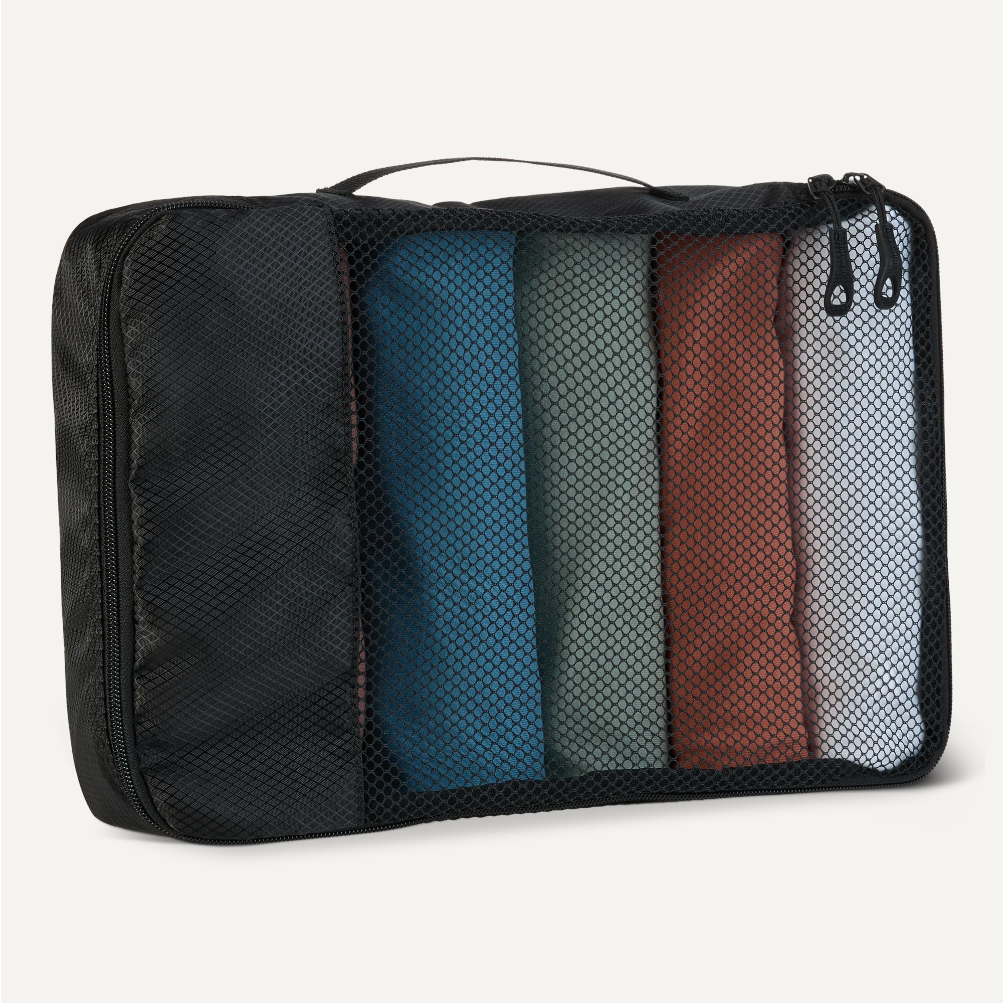 THOUGHTFUL, USER-FRIENDLY DESIGN: The mesh top panel keeps contents visible, so you can easily identify and access items without opening each cube. Each cube features a convenient webbing handle for easy handling, and they're machine washable for easy care.