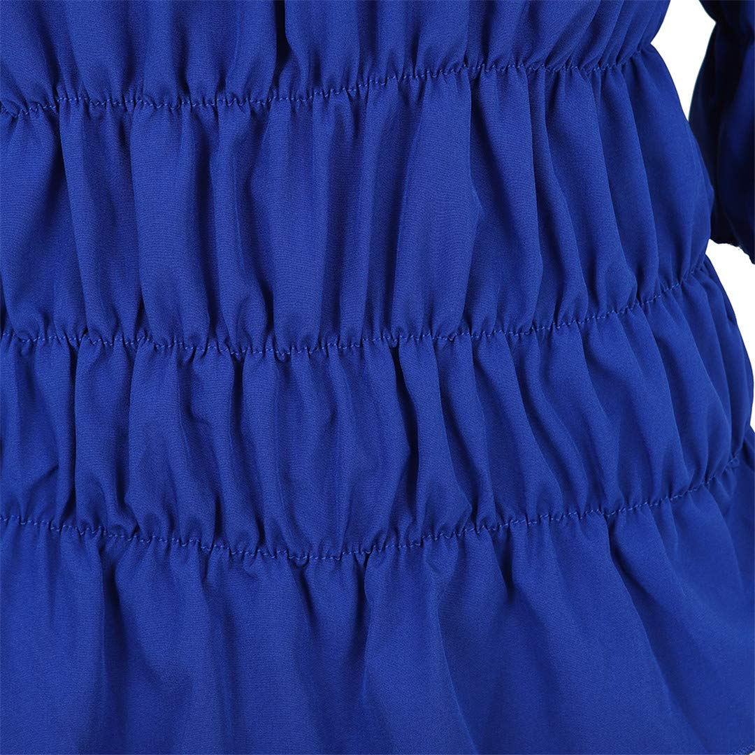 Features: Half sleeves, off the shoulder design with ruffle features, neckline with elastic band, smocked waist.