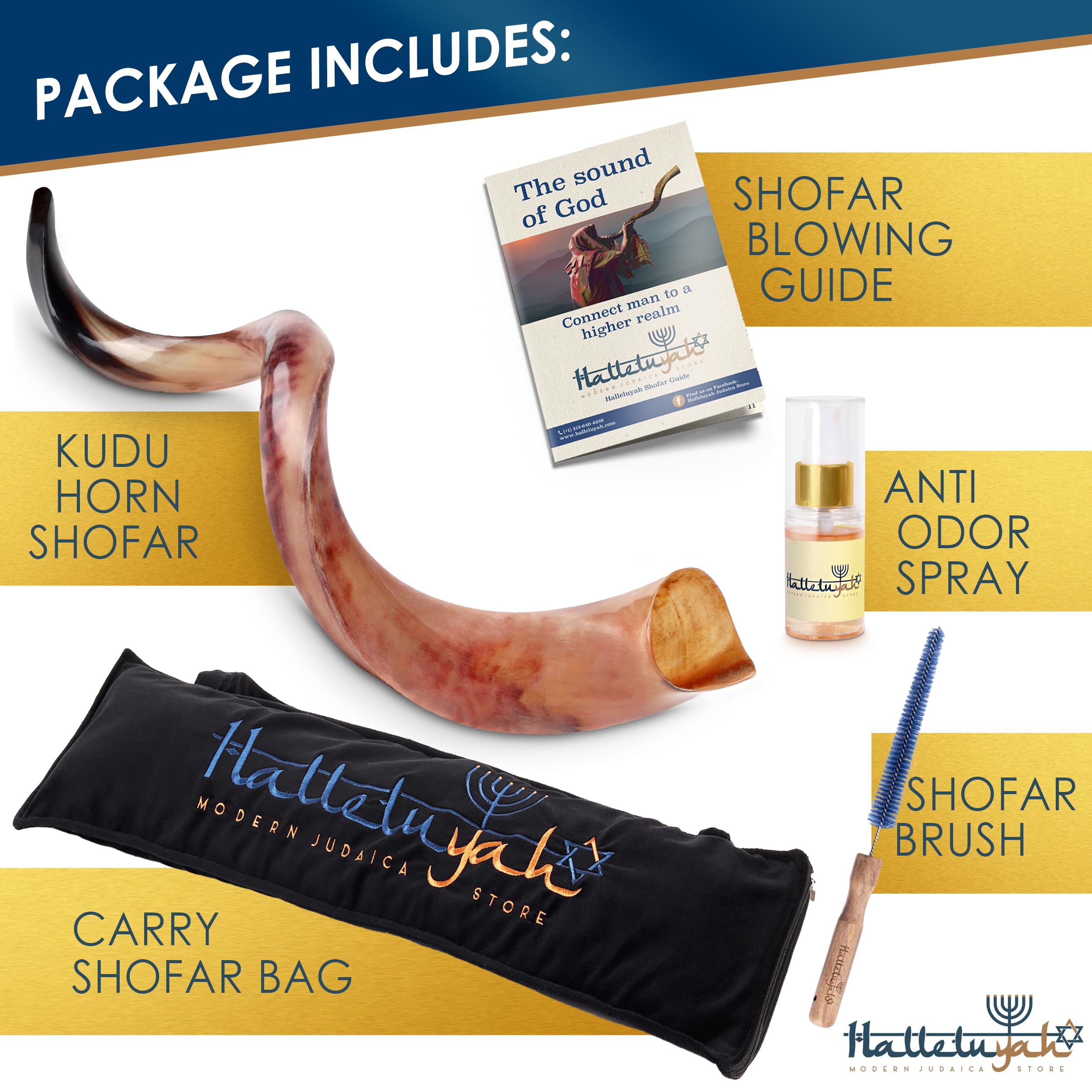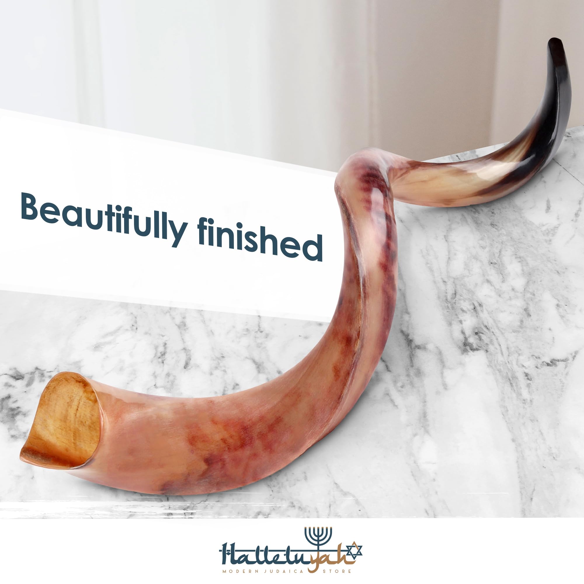 An authentic shofar horn: made with the raw horn of an animal of the Bovidae family, this shofar is 100% authentic and natural. The halleluyah shofar horn is sterilized, polished and in excellent condition, and it has been carefully designed to create the deepest sound.
