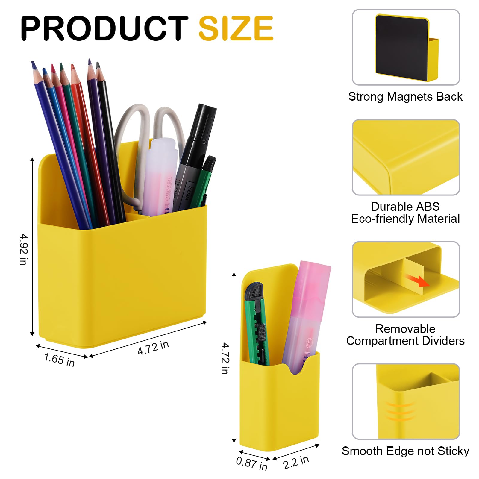 Simple and Practical:Our magnetic pen holders are suitable for holding pens, pencils, dry erase markers, erasers, rulers, children's scissors and other office, home or school supplies. Also can be served for refrigerator, whiteboard, locker or other metal surfaces.Keep your stuff always organized!