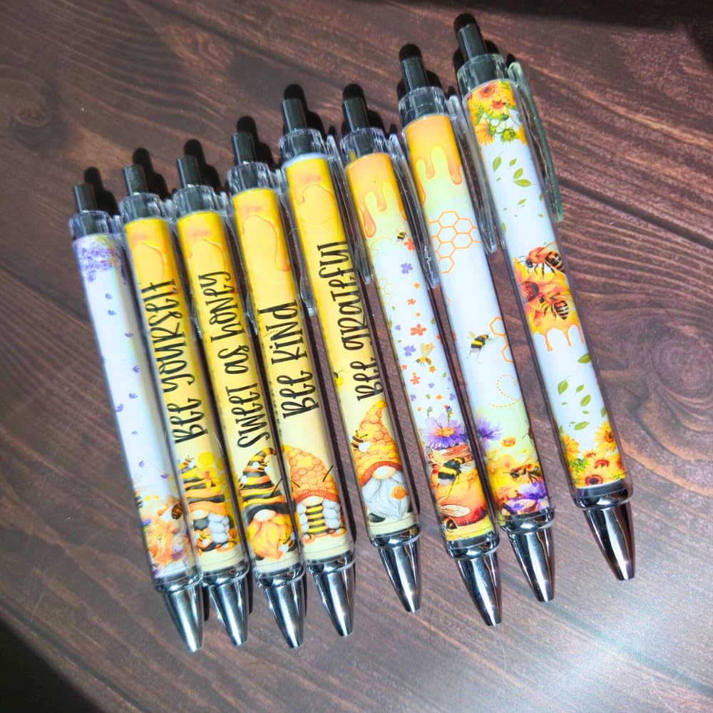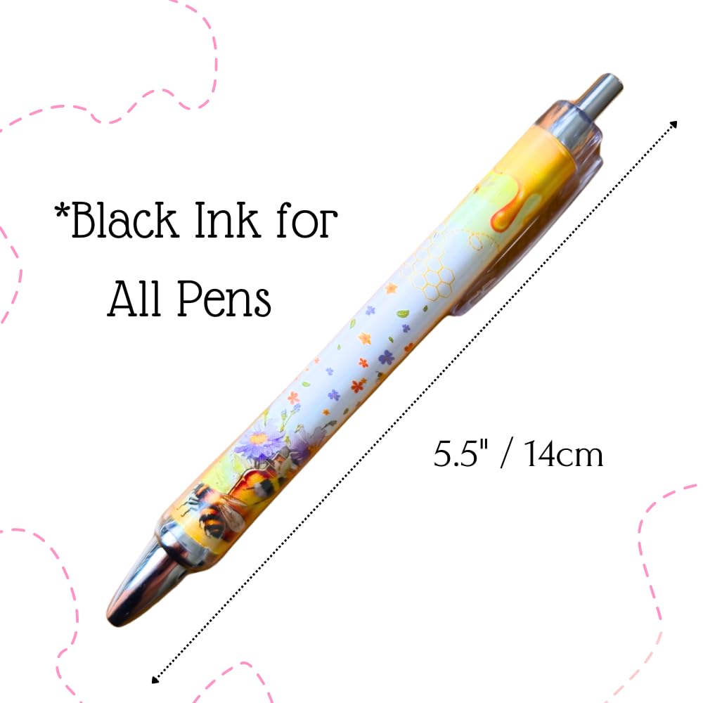 Charming Bee Designs: Each pen in this 8PC set features adorable bee-themed designs, adding a playful and charming touch to your writing routine. The detailed bee patterns are sure to bring a smile to your face and brighten up your workspace.